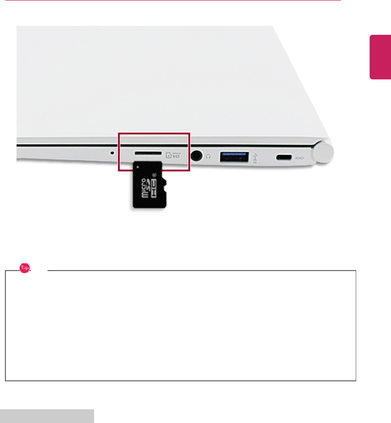 Check the direction and insert the Micro SD into the multi-card slot until it is locked in place as shown