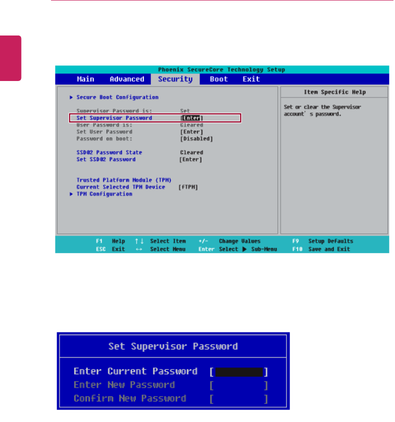 2After moving [Security] by using the arrow keys from the setup start screen, click [Set Supervisor