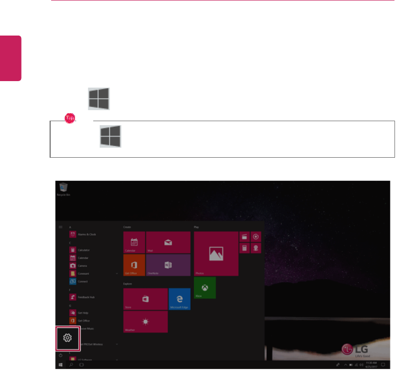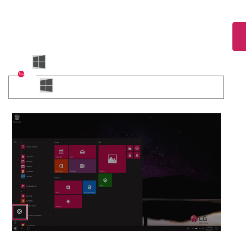 Press the [ ] key or [Ctrl] + [Esc] to display the Start menu.
