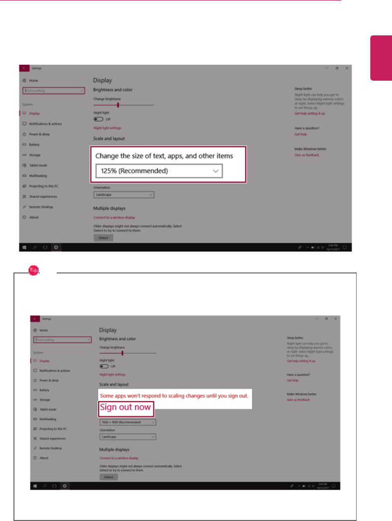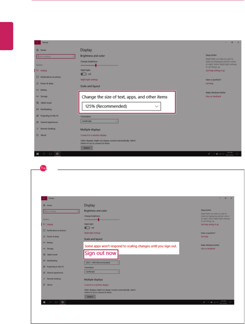 3Modify the [Change the size of text, apps, and other items] value to change the Auto Scaling