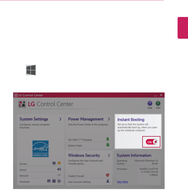 2On LG Control Center screen, set the [Instant Booting] to [ON].