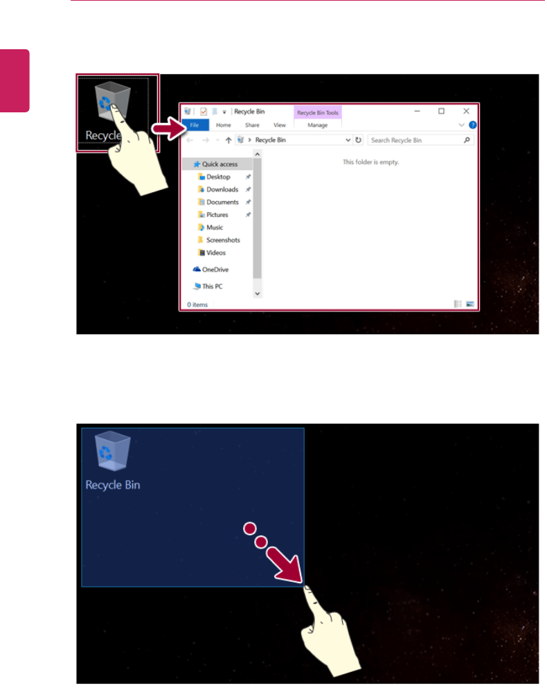 •Release the left button to drop it into the Recycle Bin. (By using this, you can drop a file into the