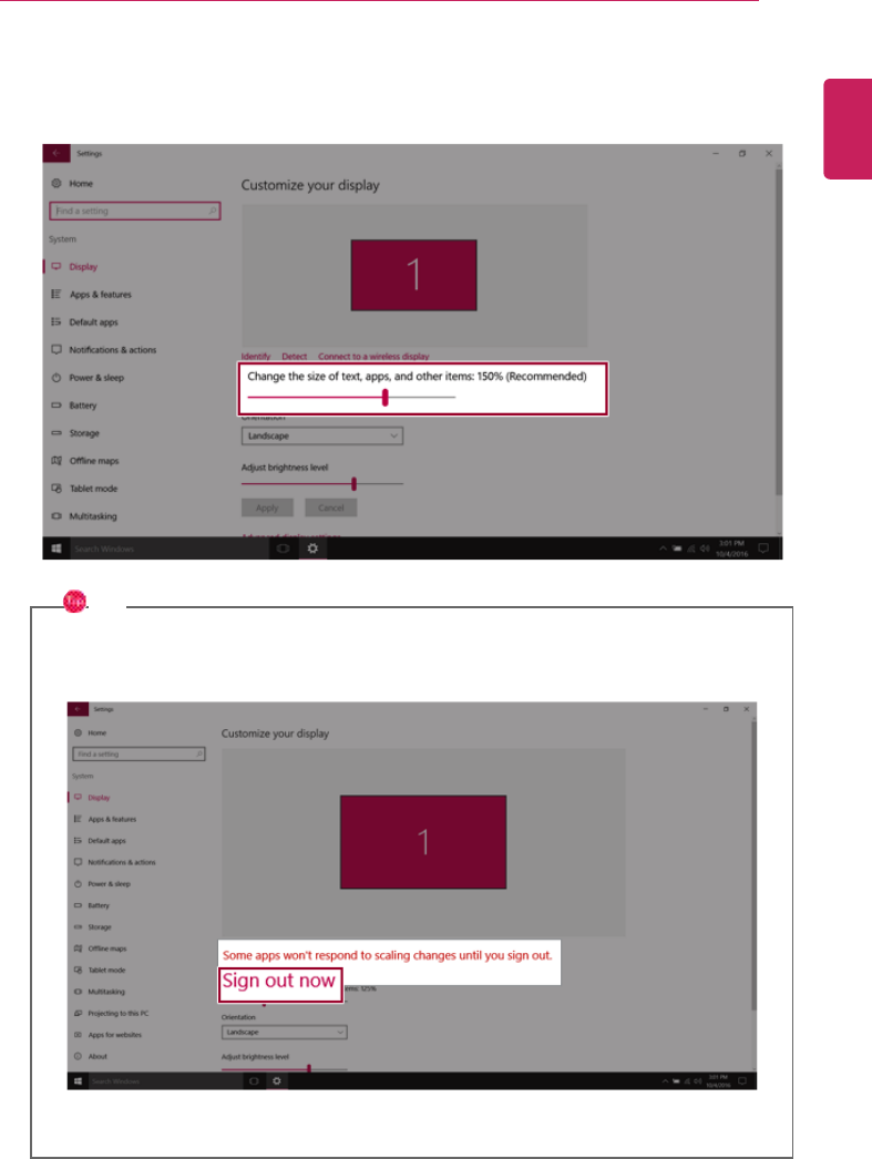 3Changing the [Change the size of text, apps and other items.] value changes the auto scaling