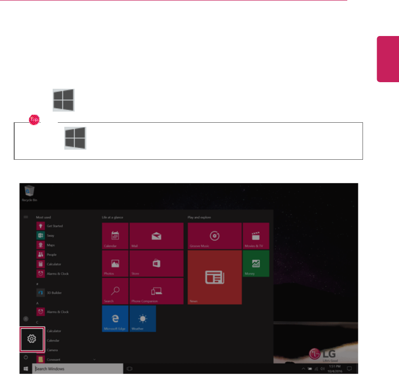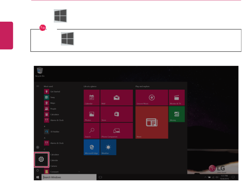 Press the [ ] key or [Ctrl] + [Esc] to display the Start menu.