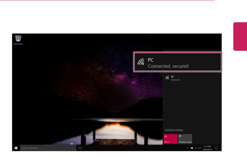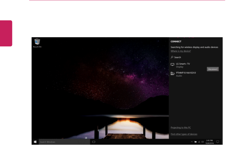 •Once the wireless display connection is established, no additional procedures and searching