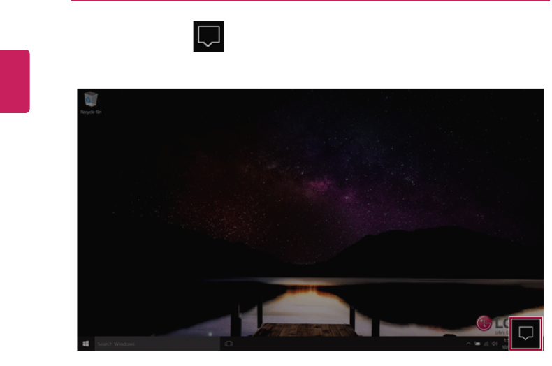 1Press the Action Center [ ] icon on the right side of the taskbar.