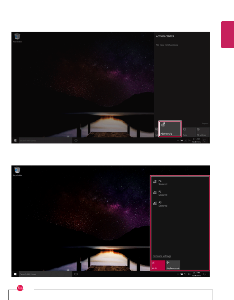 •To use the wireless display feature, the display device must support this feature.