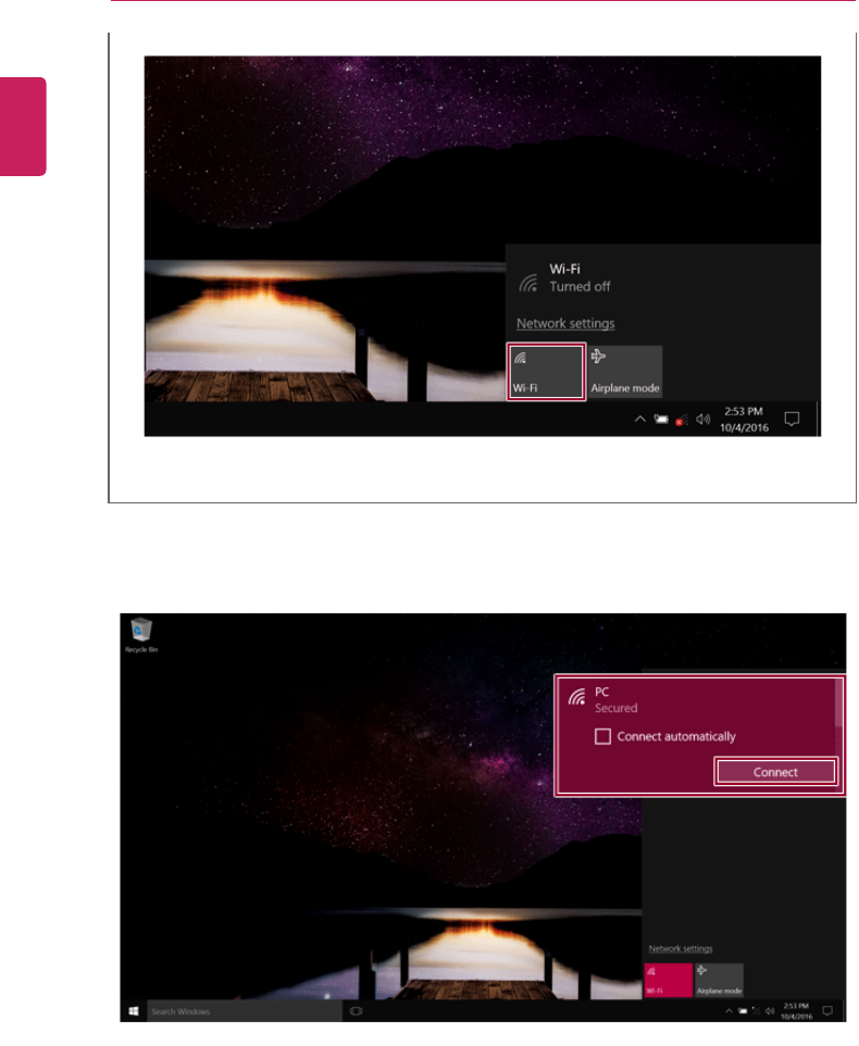 •To connect to the display device that does not support wireless display, you must