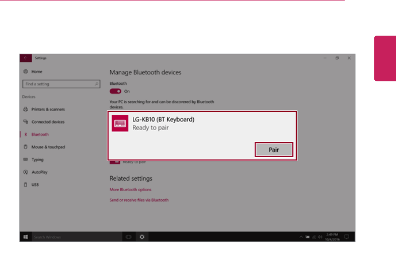 For details on connecting a Bluetooth device, refer to the user manual that came with the