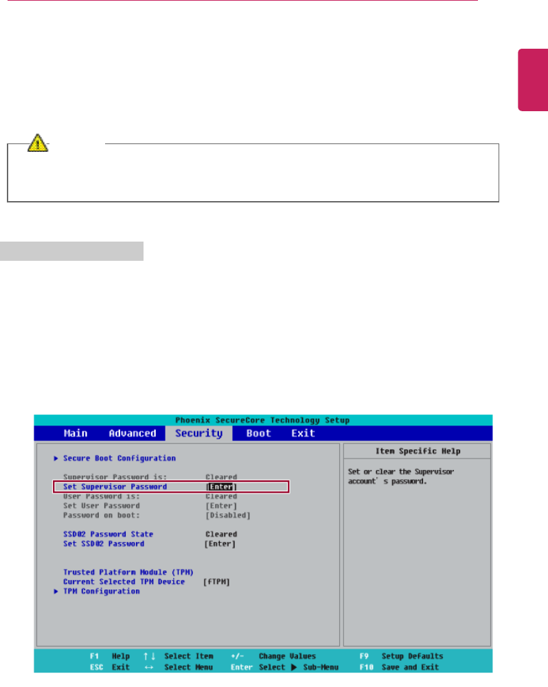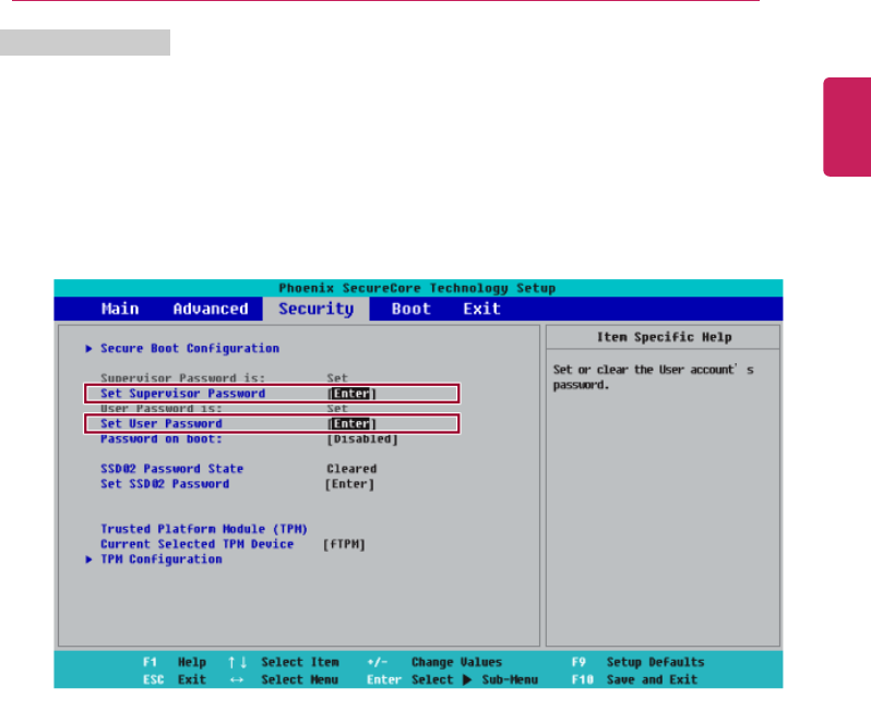 2After moving [Security] by using the arrow keys from the setup start screen, click [Set SSD02