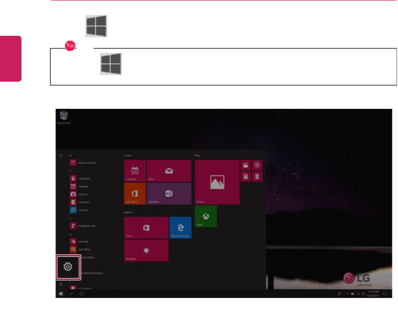 Press the [ ] key or [Ctrl] + [Esc] to display the Start menu.
