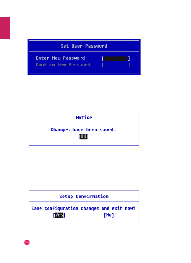4Press [Enter] in [Enter New Password] and [Confirm New Password].