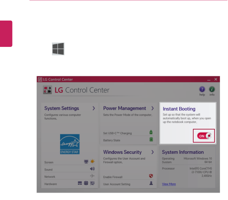 2On LG Control Center screen, set the [Instant Booting] to [ON].