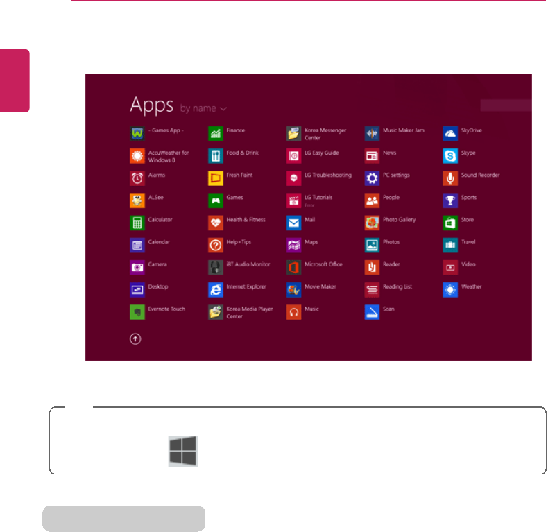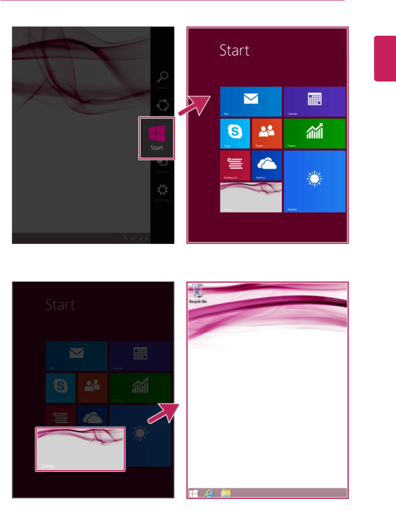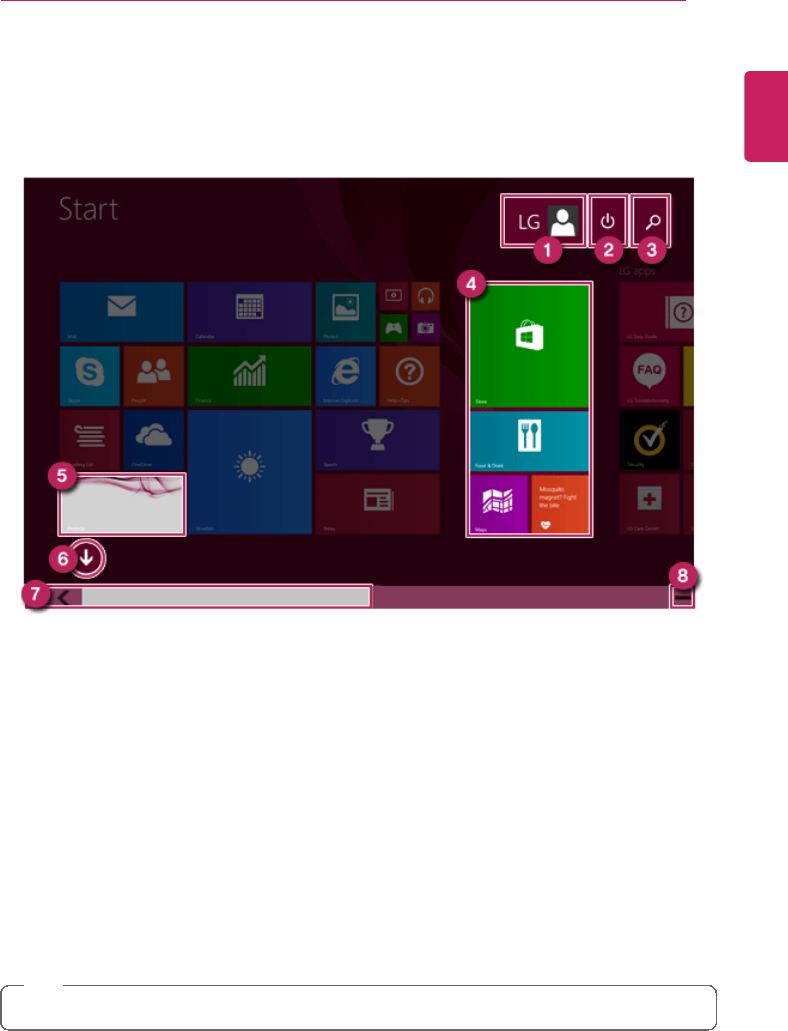 ] tile on the Start screen, or the [ ] icon in Desktop mode to run LG
