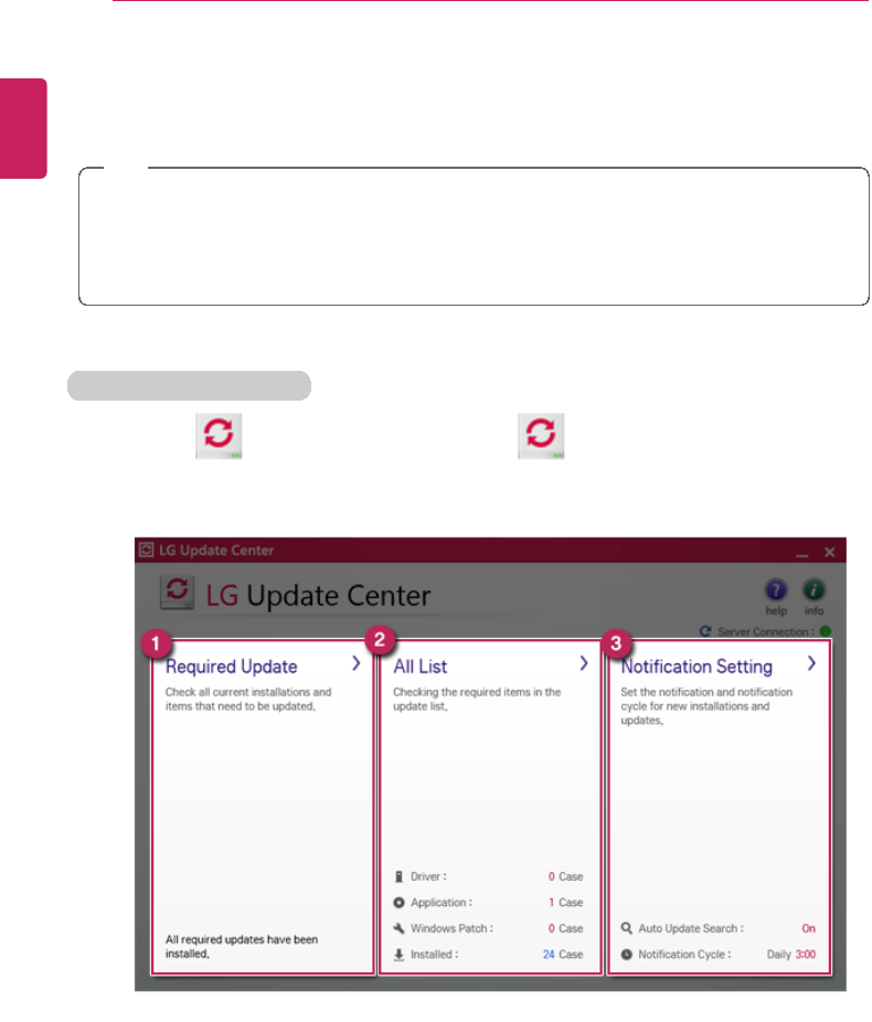 For more information on LG Update Center, refer to [Help].