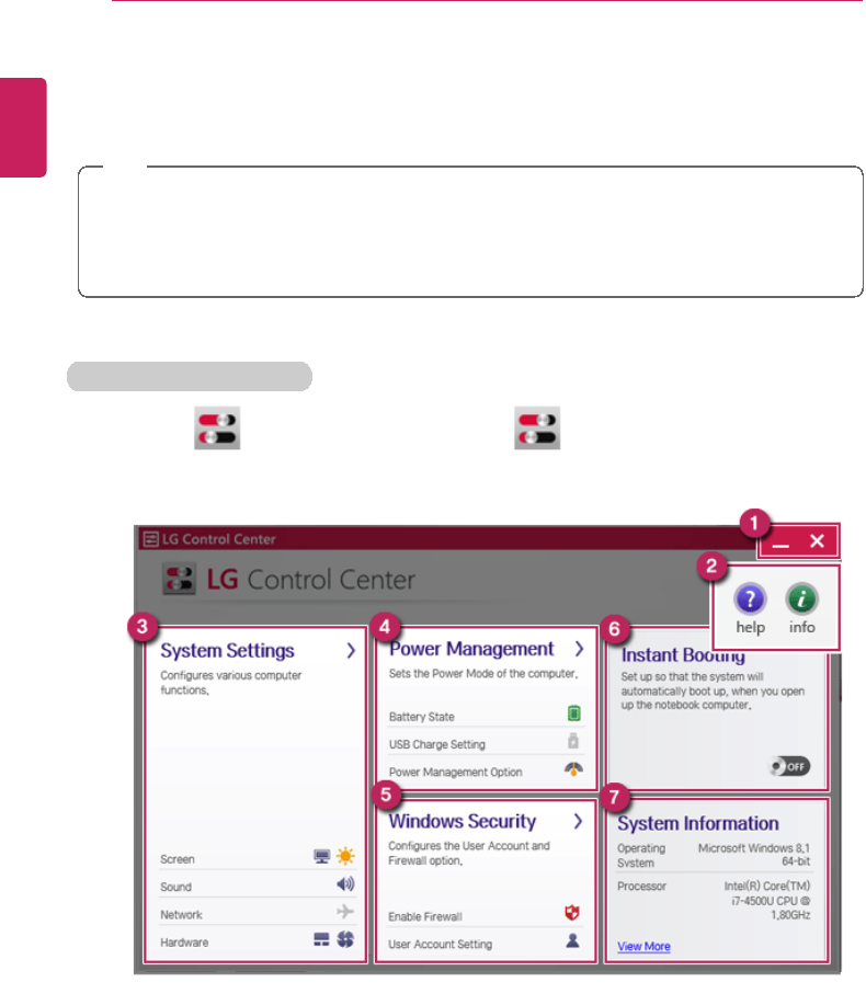 LG Control Center For more details about how to use , refer to the corresponding