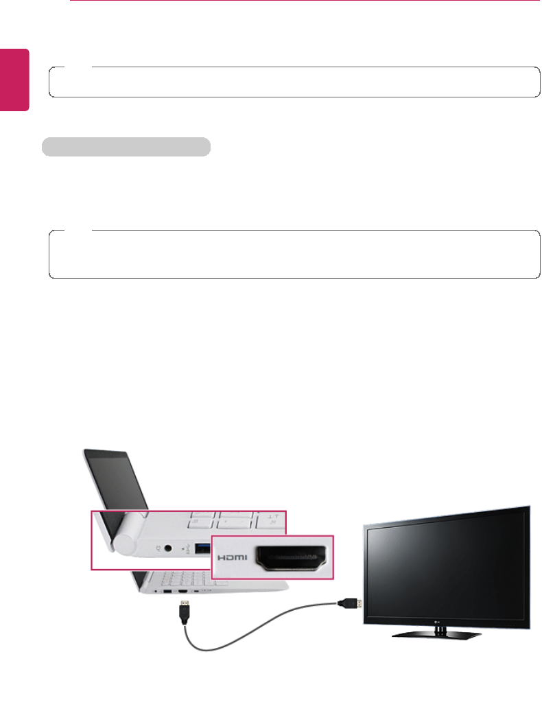 1Connect the HDMI cable to the PC and the external device (TV, monitor) that supports