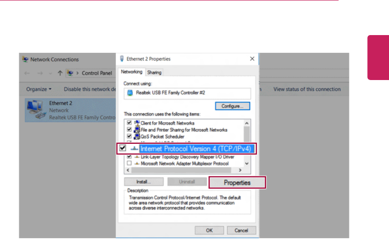 6Select [Internet Protocol Version 4 (TCP/IPv4)] and click the [Properties] button.