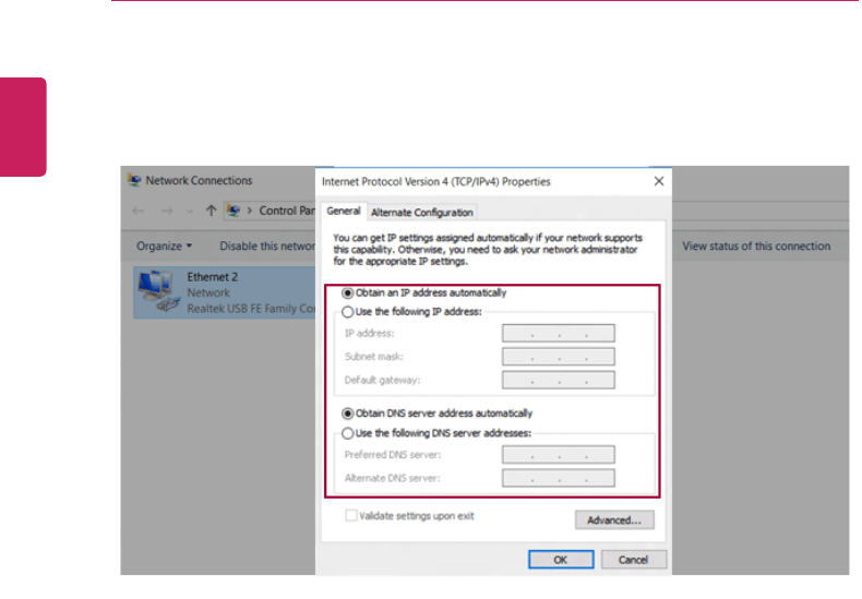 7To use an automatic IP(DHCP), select [Obtain an IP Address Automatically]. If you