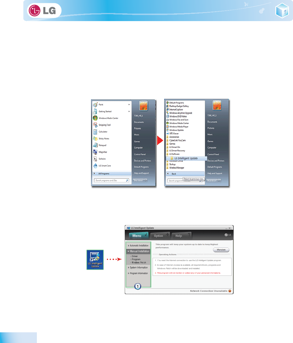 To install a driver or application, use LG Intelligent Update provided by LG Electronics.