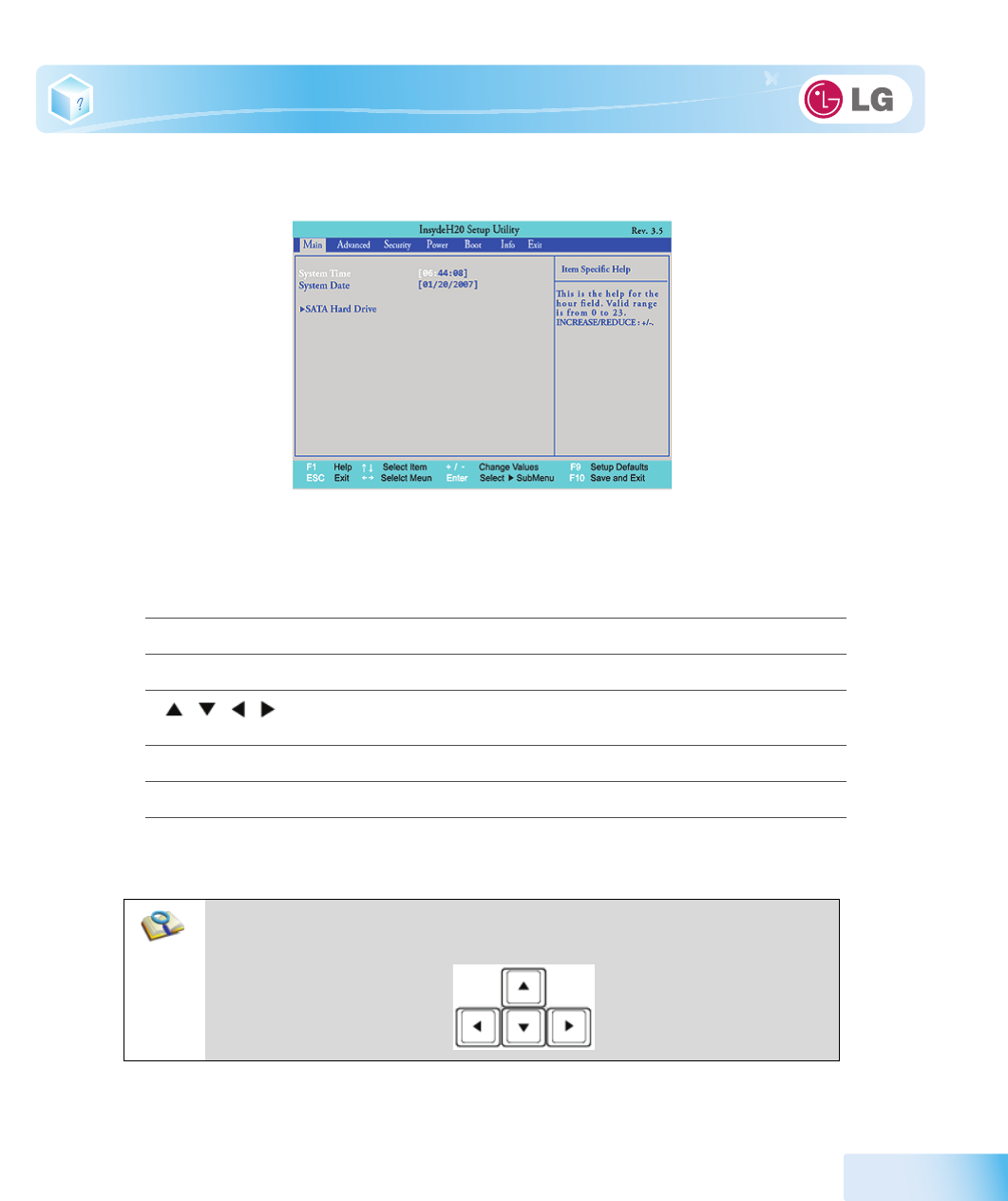 1. After opening the system setup screen, use the arrow keys to move to Security.