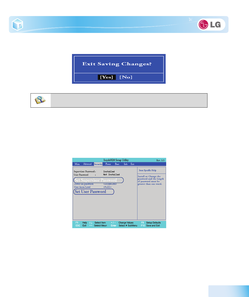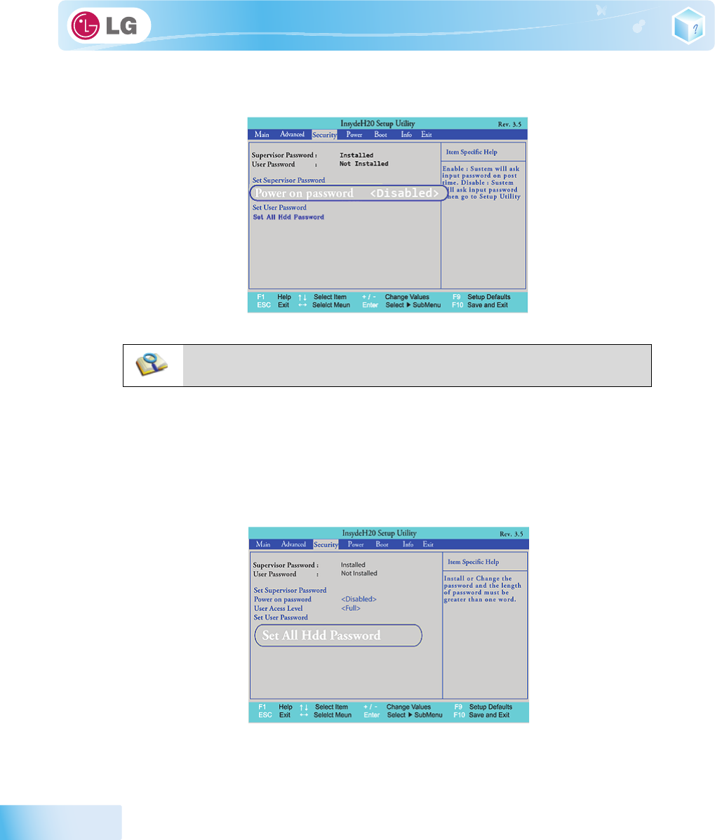 setup menu. In case other people also use the notebook PC, it is recommended to