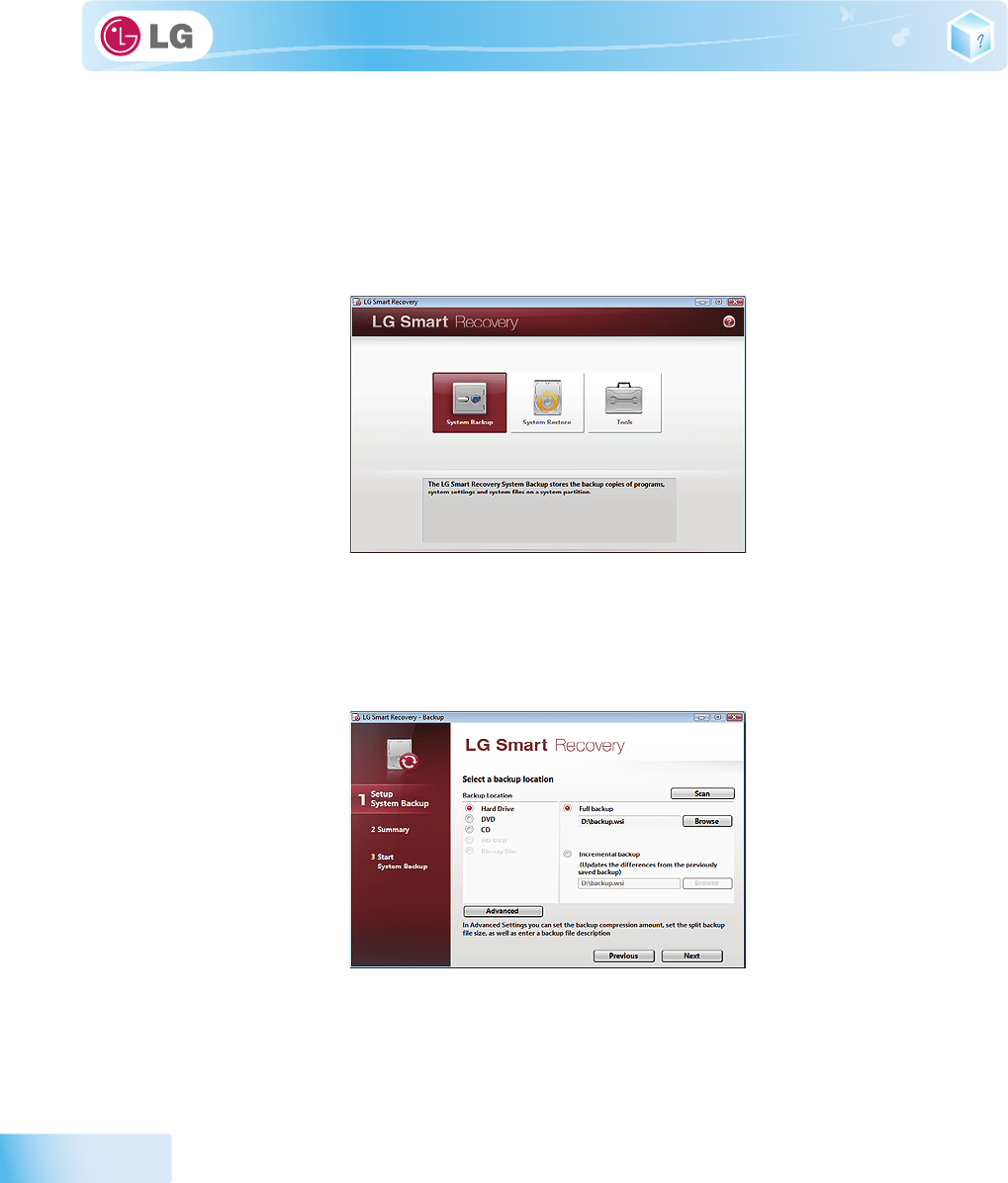 ※ Backup important data by using Tools menu before starting the System Restore process.
