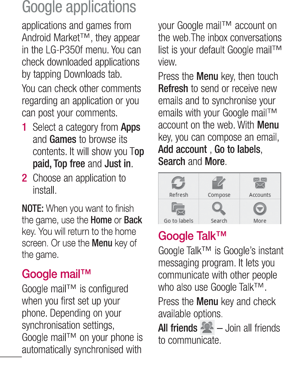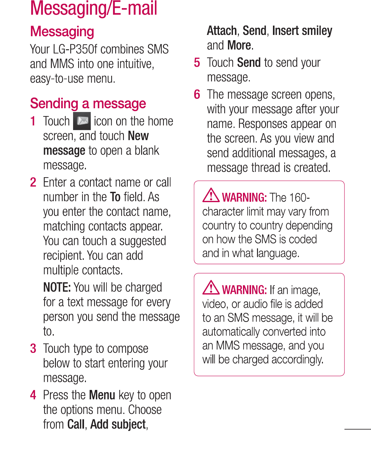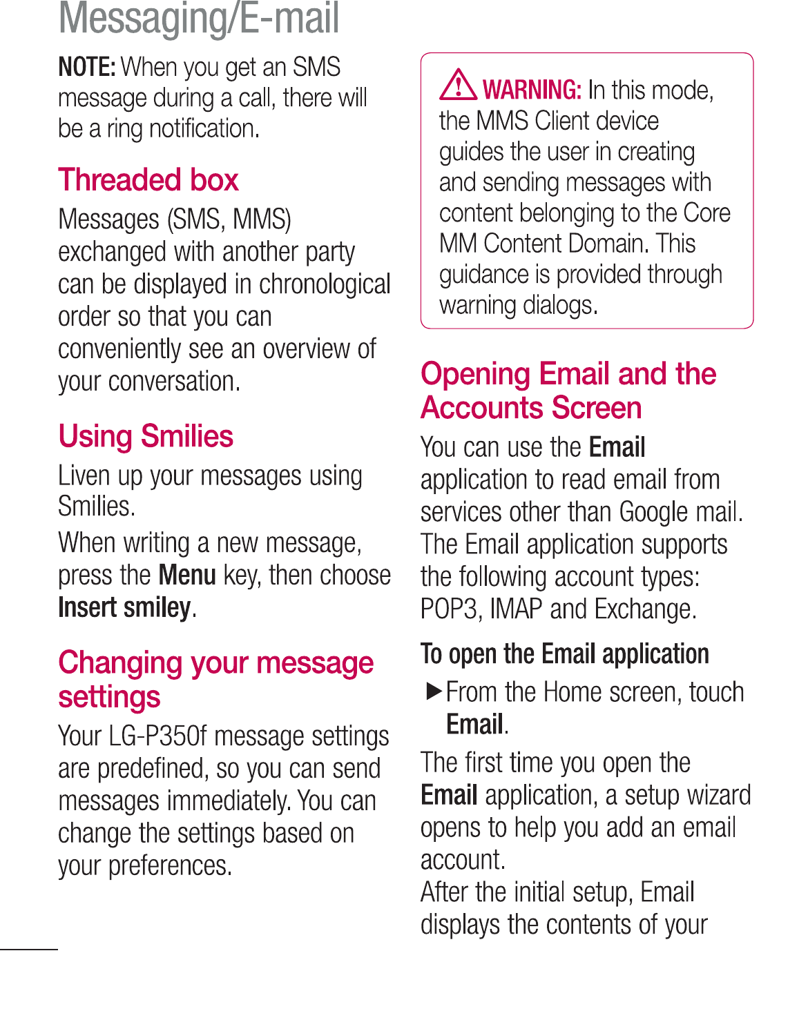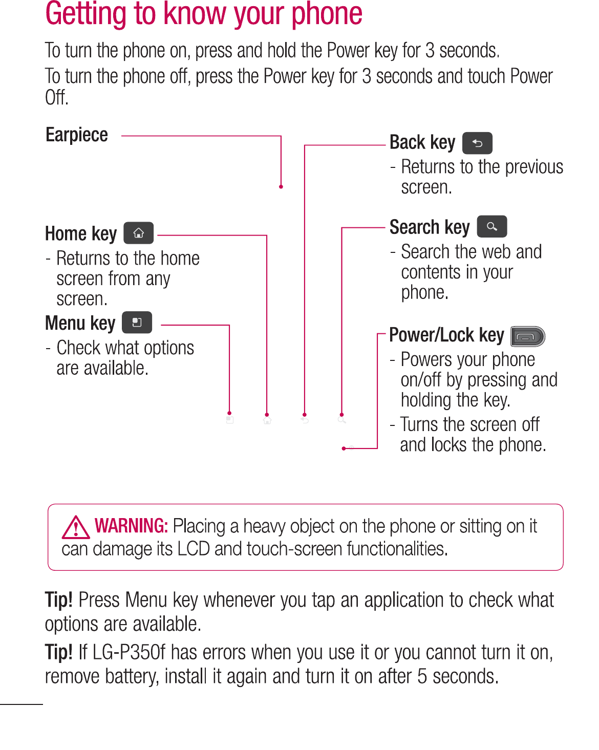 LG Electronics USA P350F Cellular/PCS GSM/EDGE and Cellular WCDMA Phone with WLAN and Bluetooth User Manual 2011021113255230941 LG P350f