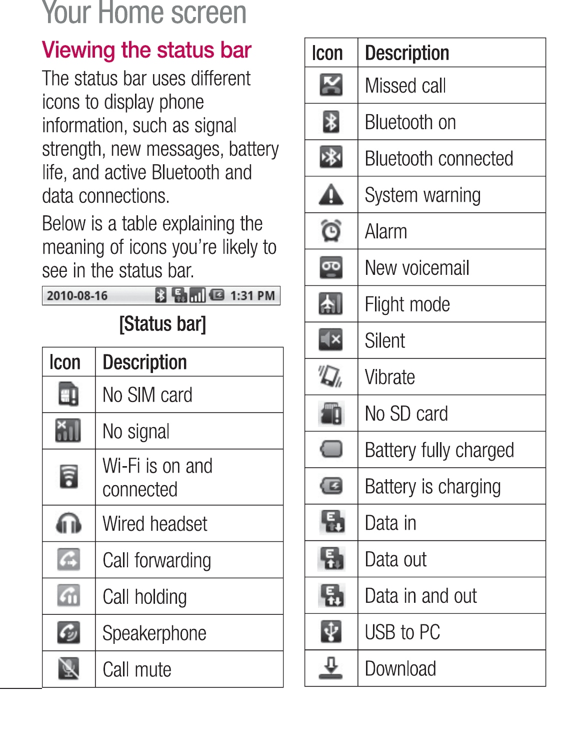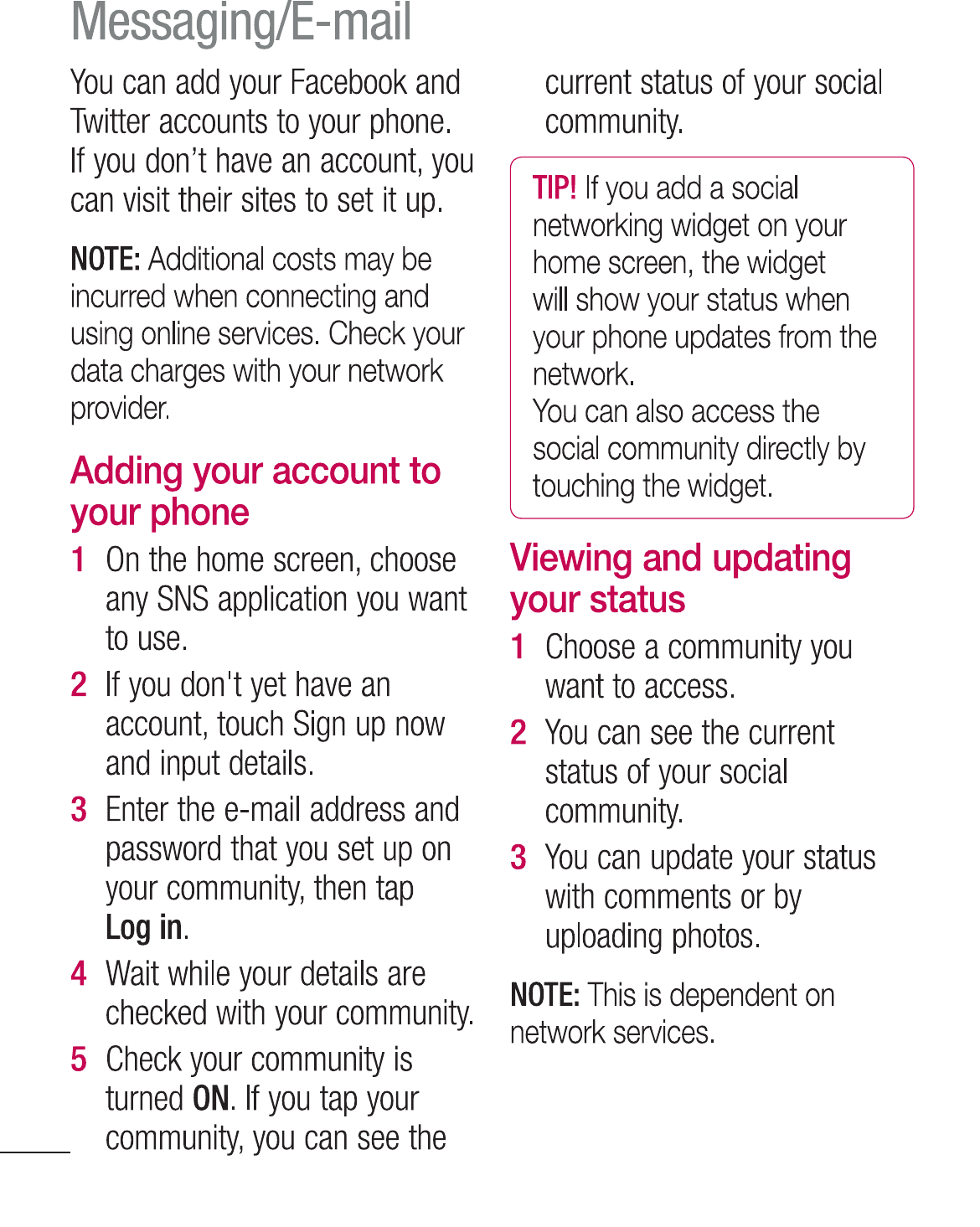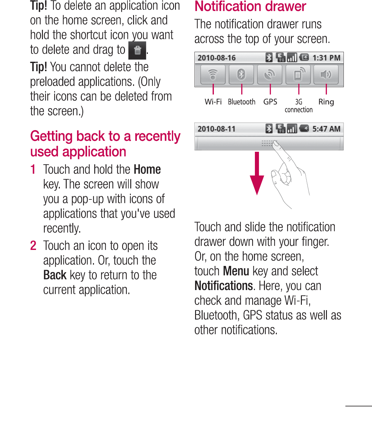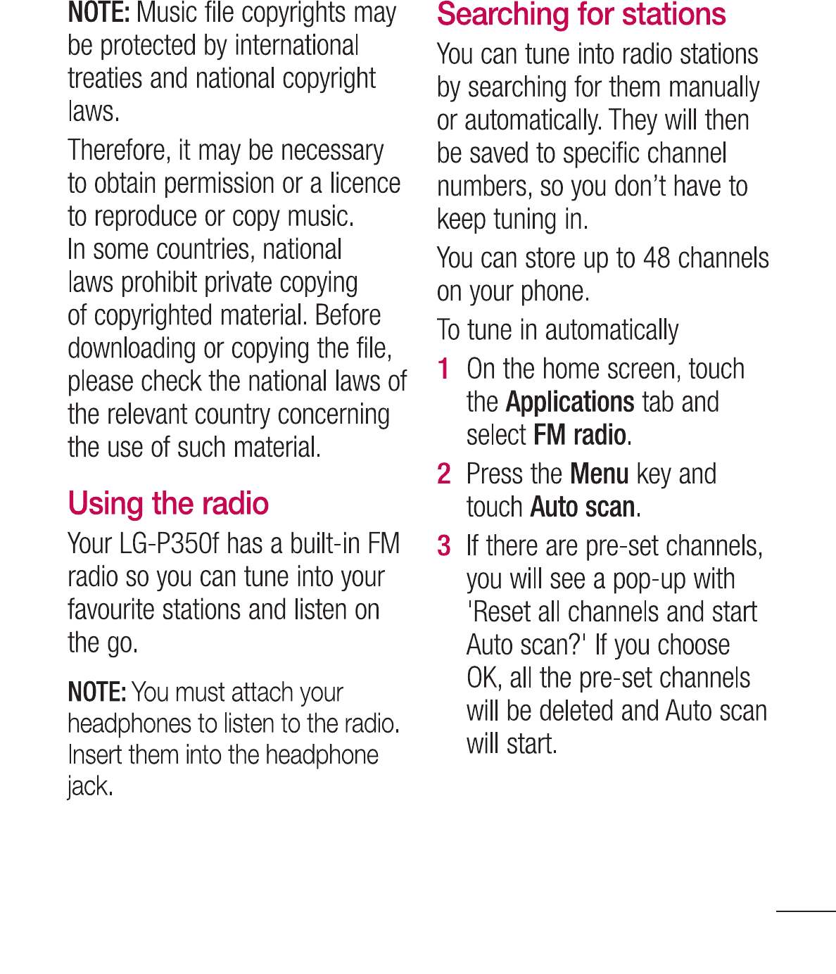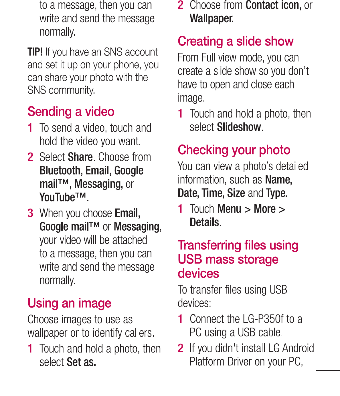 LG Electronics USA P350F Cellular/PCS GSM/EDGE and Cellular WCDMA Phone with WLAN and Bluetooth User Manual 2011021113255230941 LG P350f