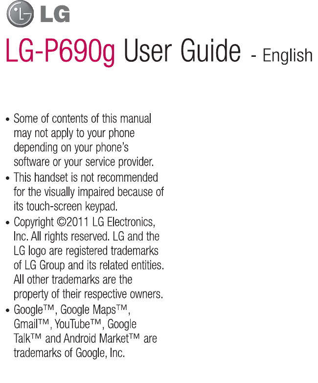 LG Electronics USA P690G Cellular/PCS GSM/WCDMA/EDGE Phone with WLAN and Bluetooth User Manual 2011070816452842841 LG P690g