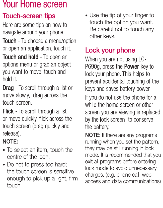 LG Electronics USA P690G Cellular/PCS GSM/WCDMA/EDGE Phone with WLAN and Bluetooth User Manual 2011070816452842841 LG P690g