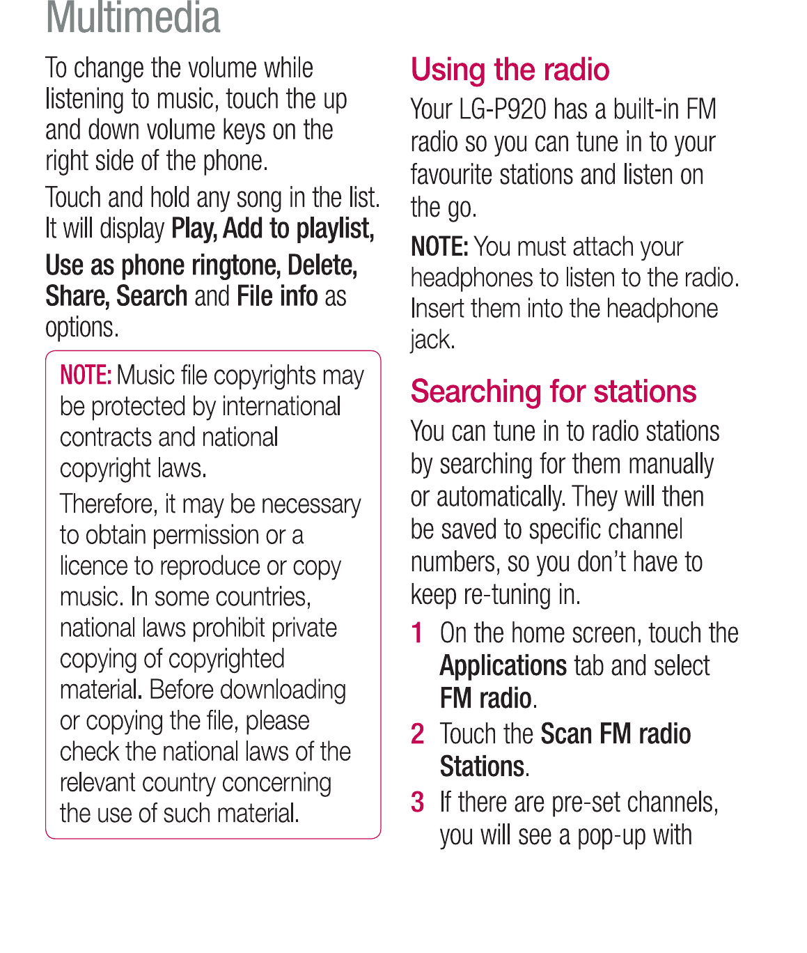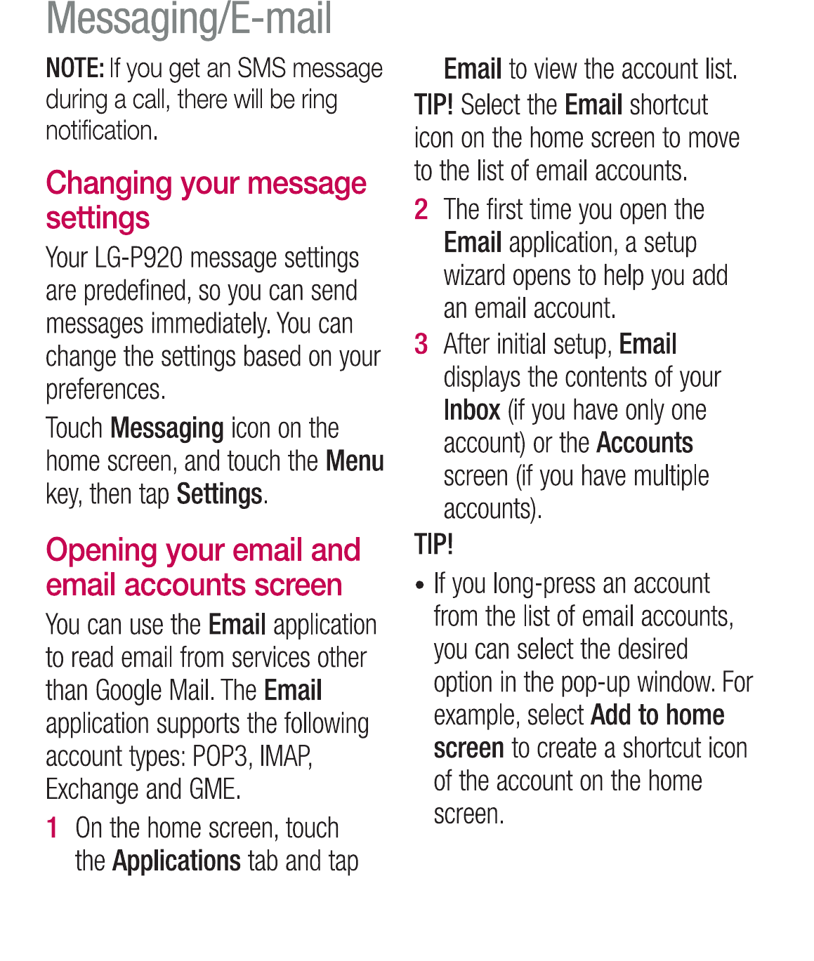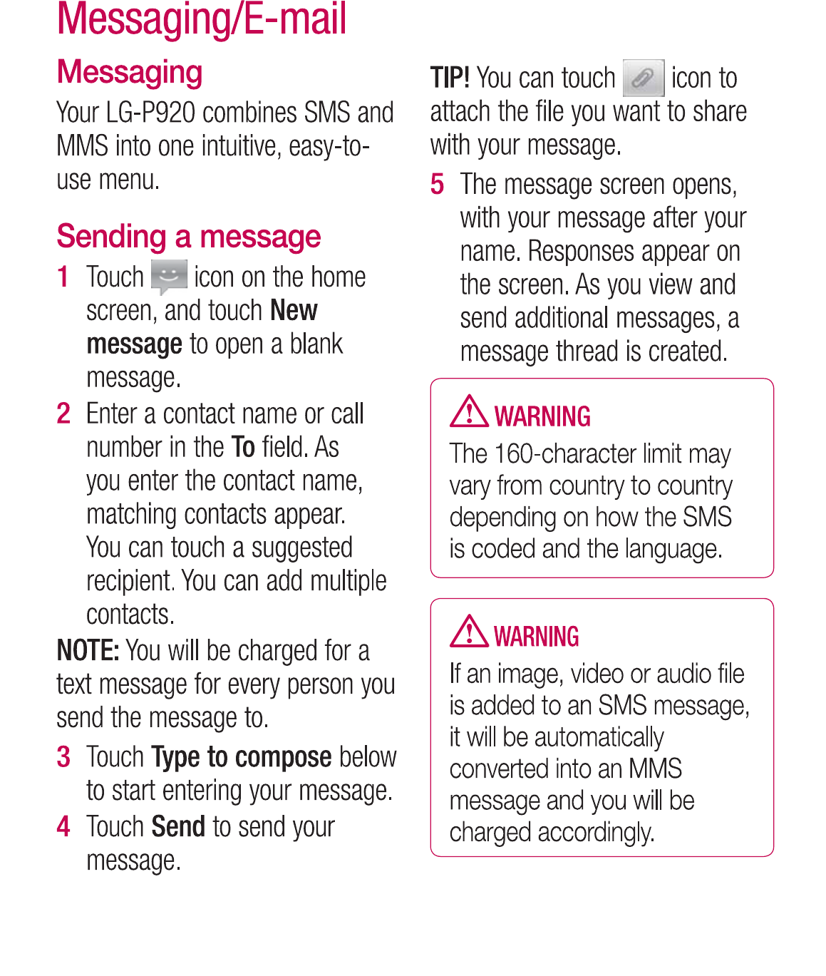 LG Electronics USA P920 Cellular/PCS GSM/EDGE and AWS/PCS WCDMA Phone with WLAN and Bluetooth User Manual
