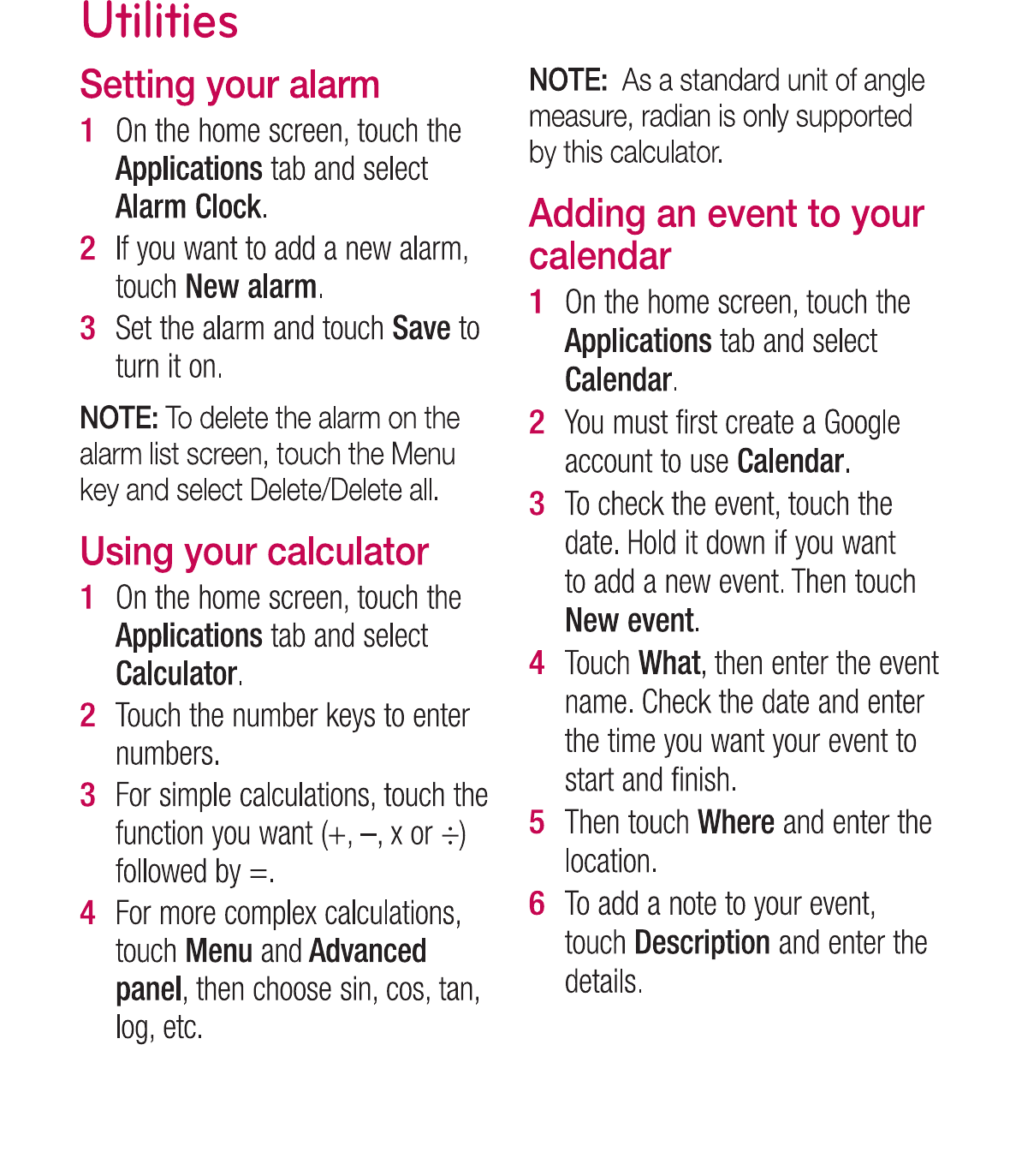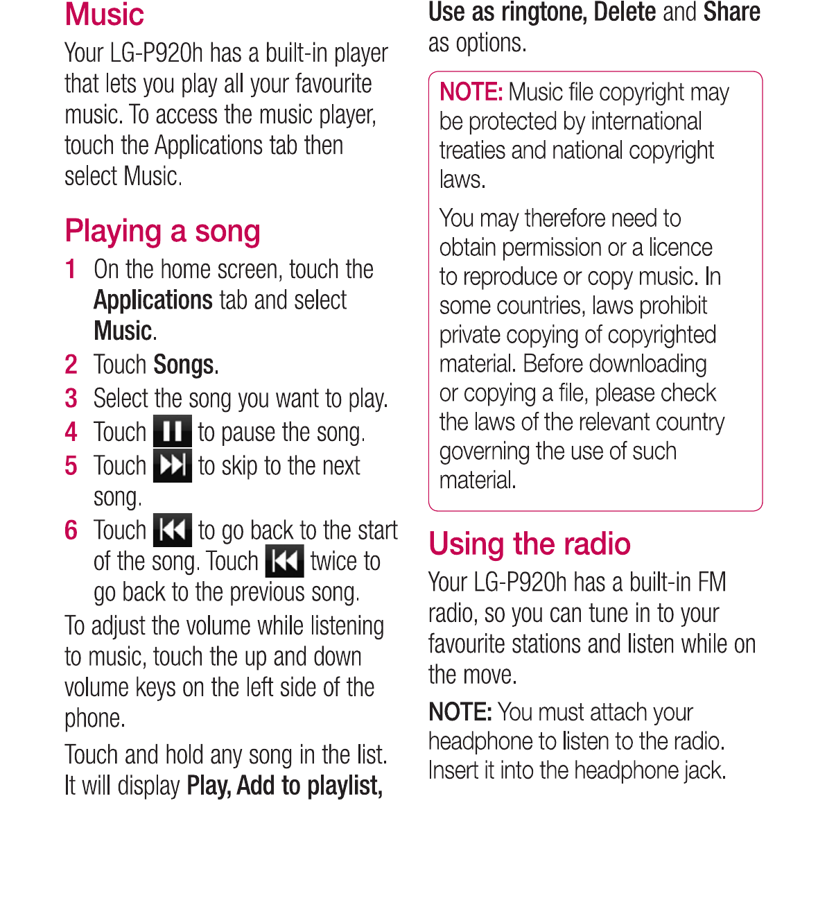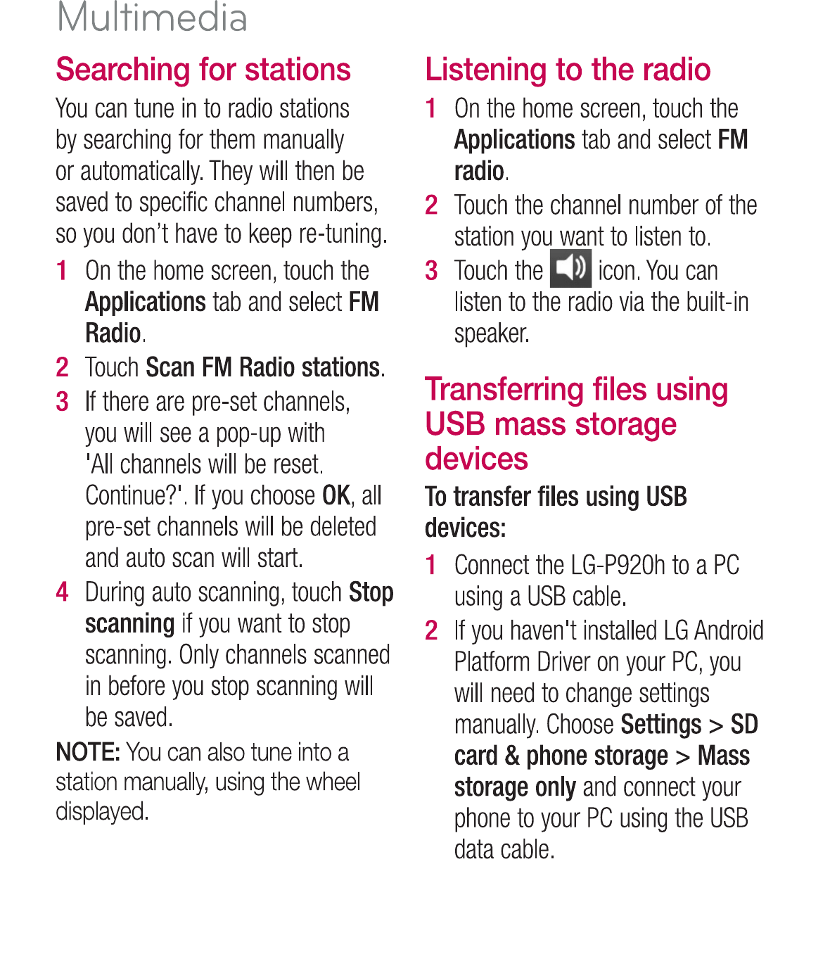 LG Electronics USA P920H Cellular/PCS GSM/WCDMA/EDGE Phone with WLAN and Bluetooth User Manual