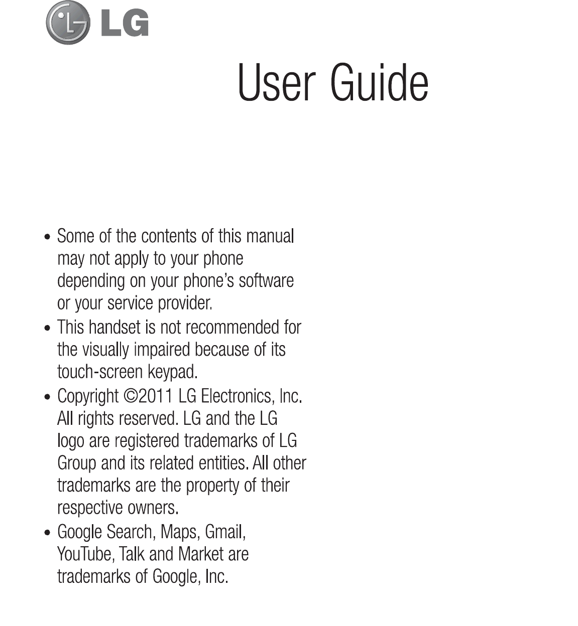 LG Electronics USA P970G Cellular/PCS GSM/WCDMA/EDGE Phone with WLAN and Bluetooth User Manual