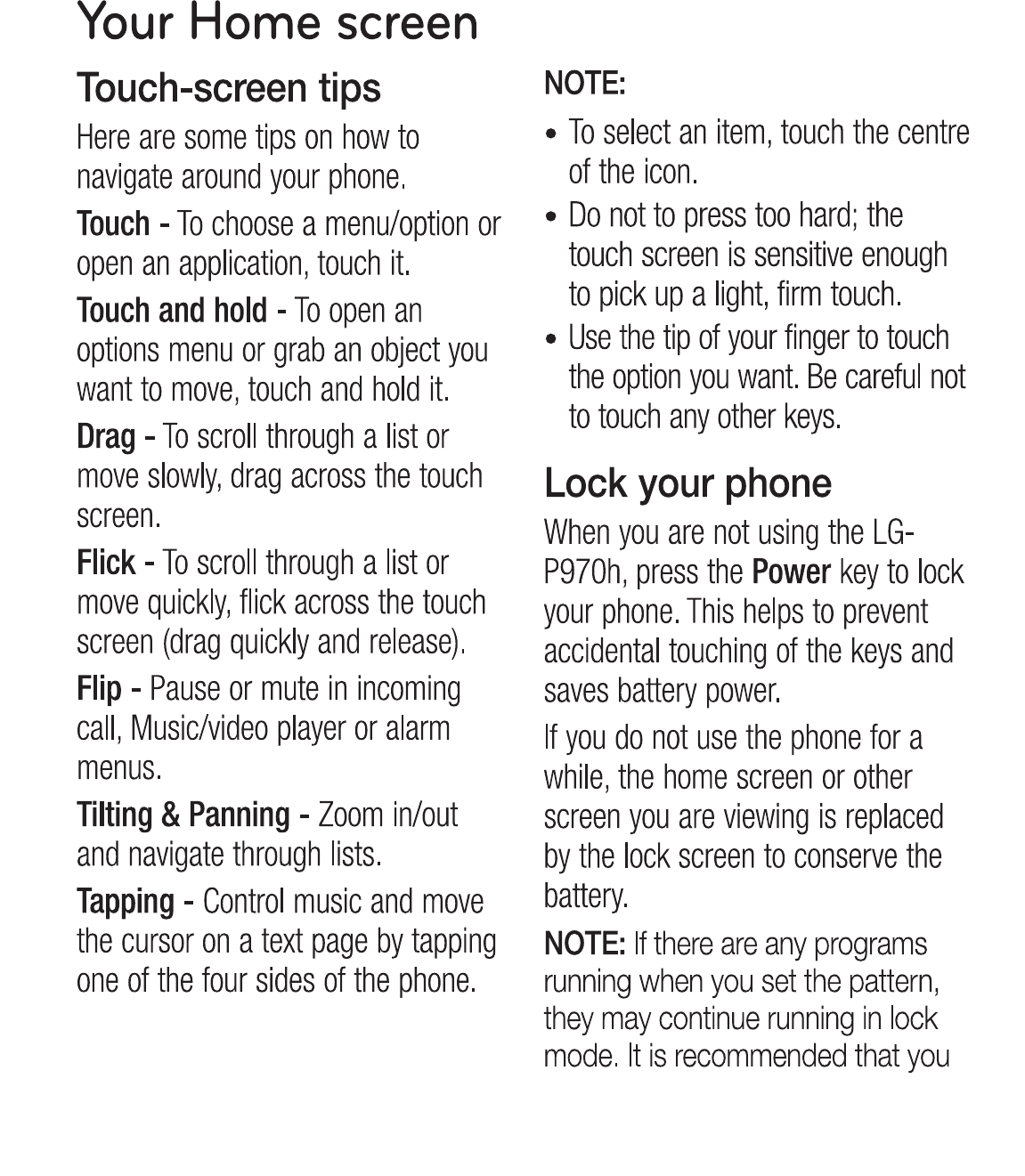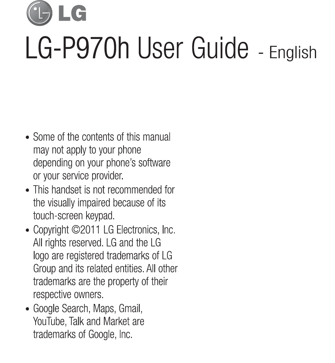 LG Electronics USA P970H Cellular/PCS GSM/WCDMA/EDGE Phone with WLAN and Bluetooth User Manual 2011022309171913741 LG P970h