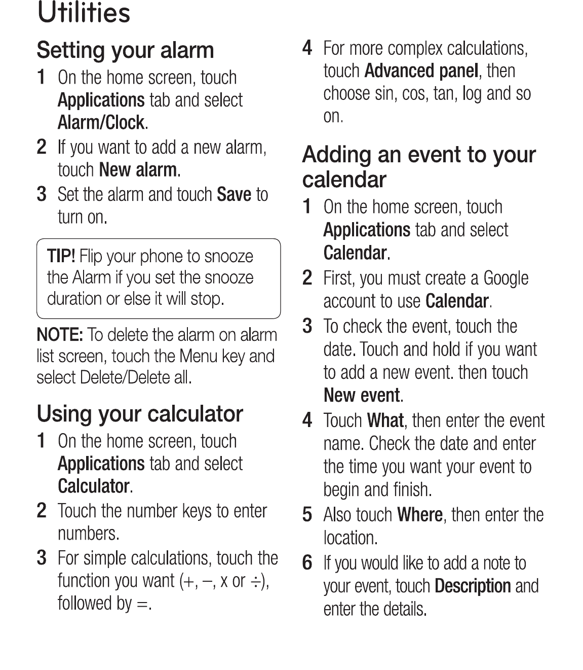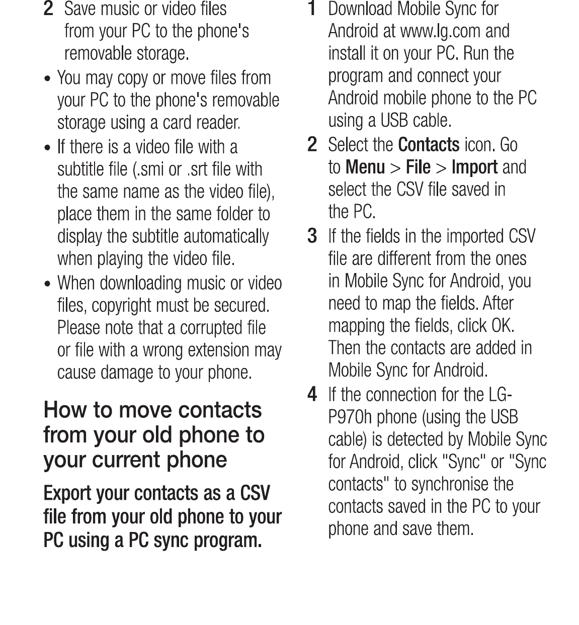 LG Electronics USA P970H Cellular/PCS GSM/WCDMA/EDGE Phone with WLAN and Bluetooth User Manual 2011022309171913741 LG P970h