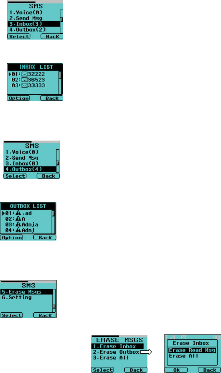 - select ‘Erase All’ -> delete all messages(old and new) sotred in Inbox.