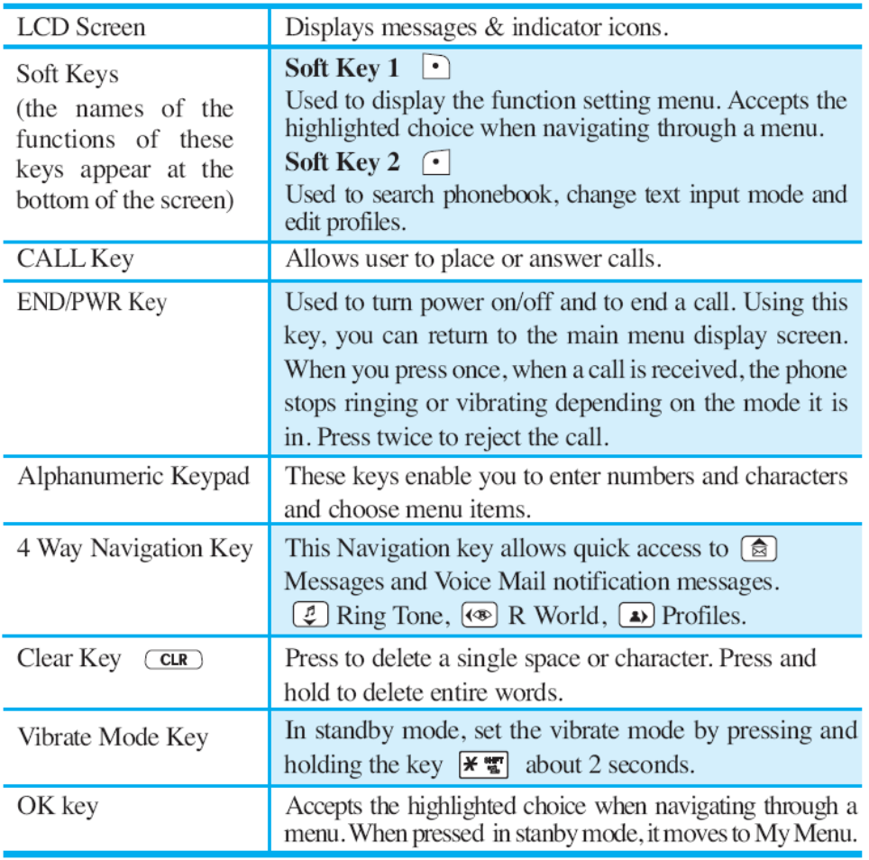 1. When the phone rings or vibrate (if the Vibrate Mode is enabled), press any key (except [END])