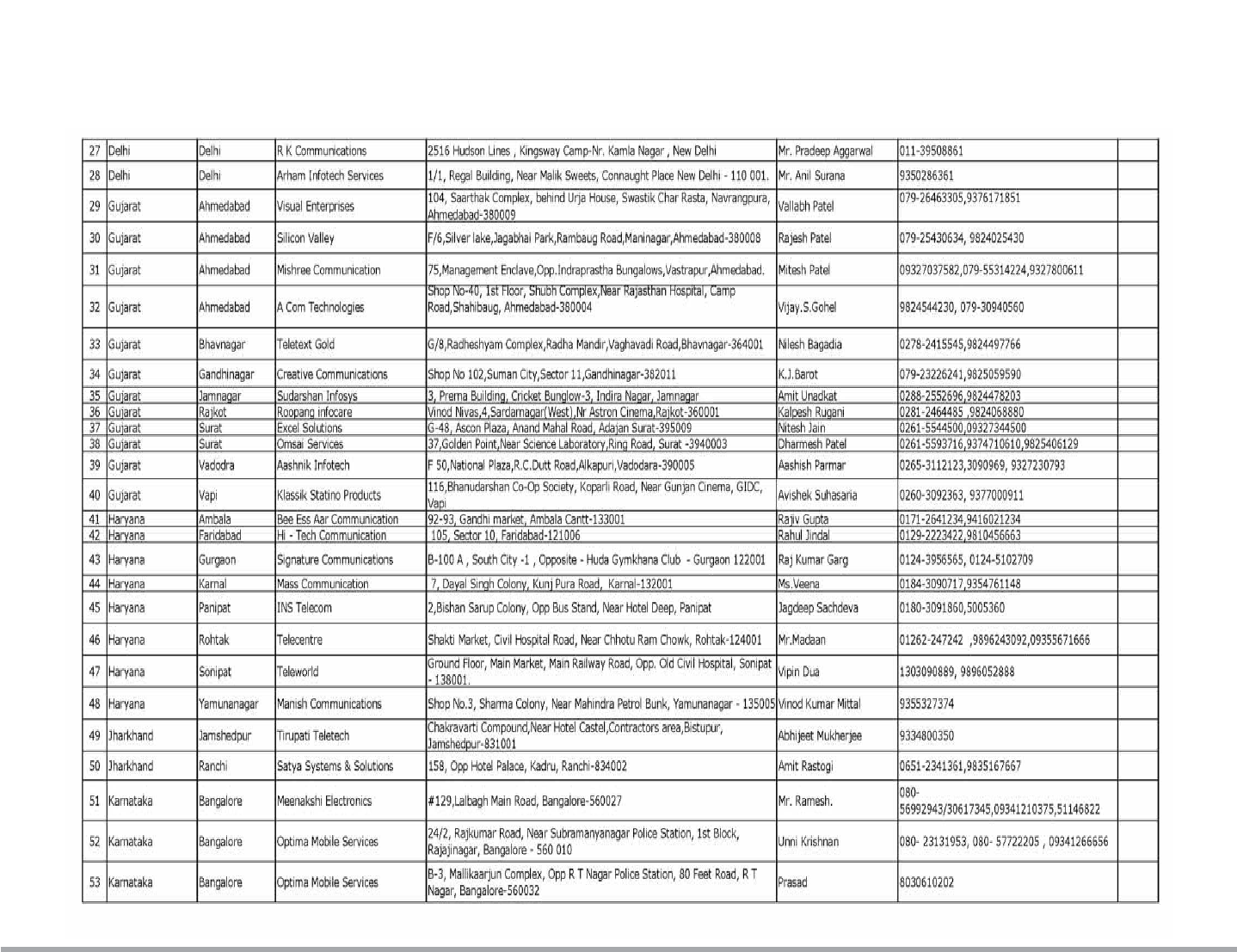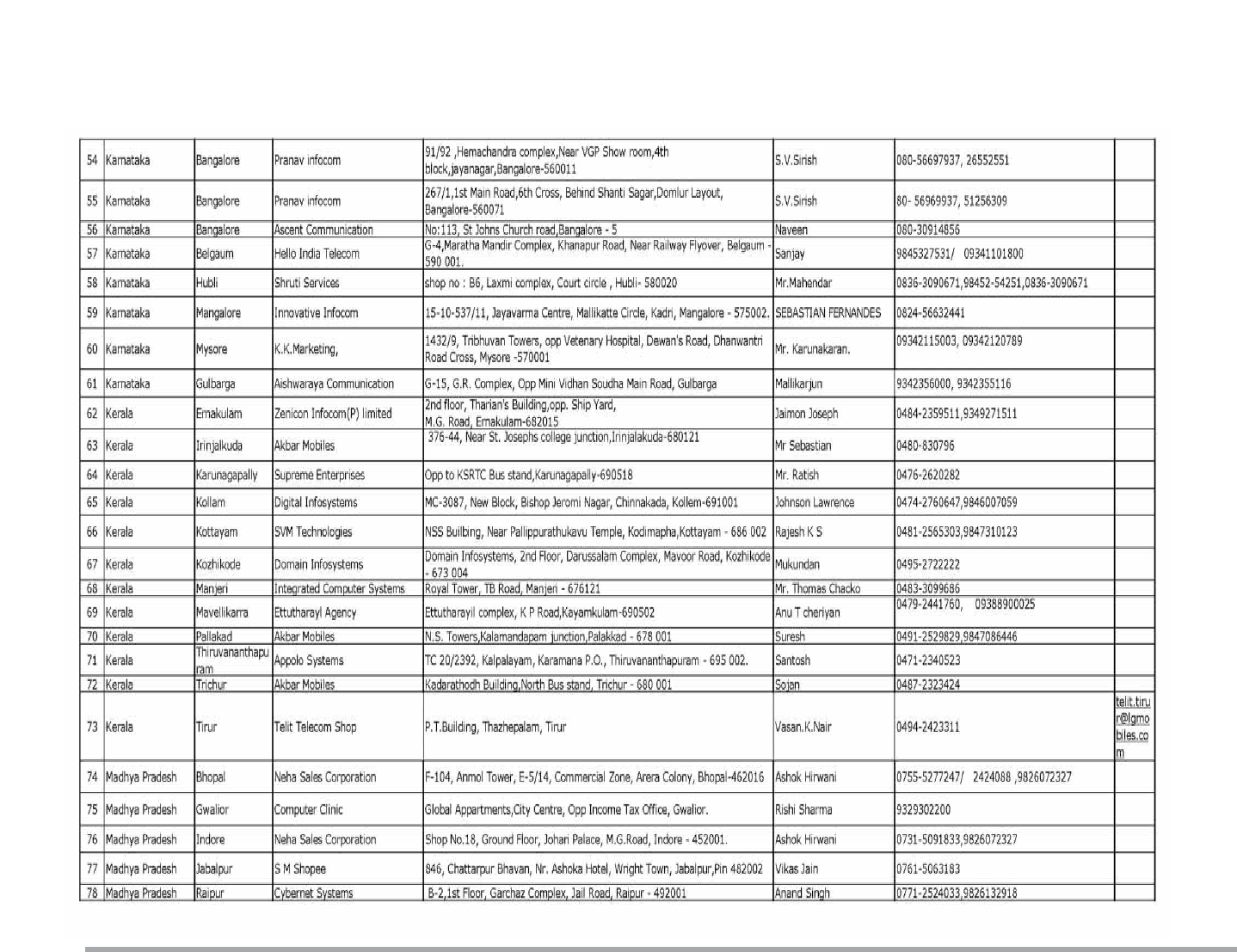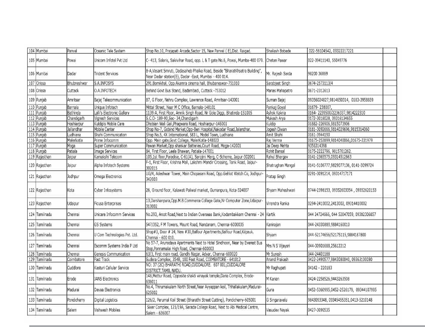 Service Center List