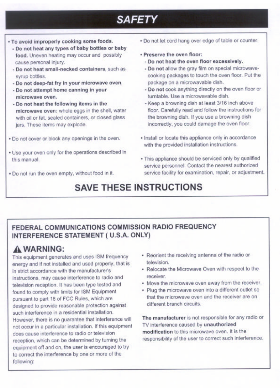 Precautions to Avoid Possible Exposure to Excessive Microwave Energy............................................................3