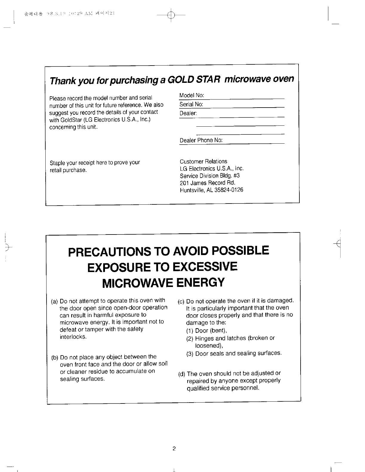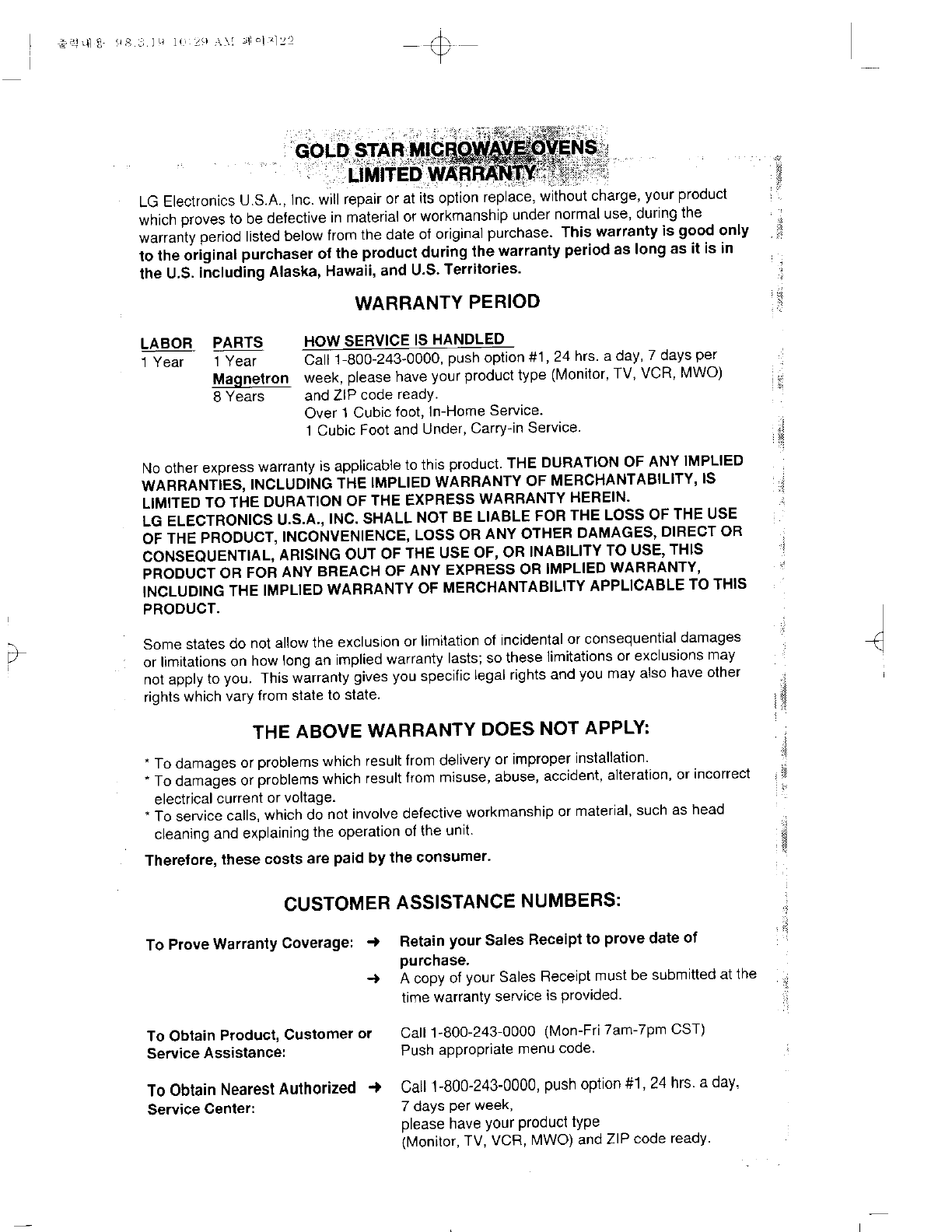 LG Electronics USA S193XD Microwave Oven User Manual 8