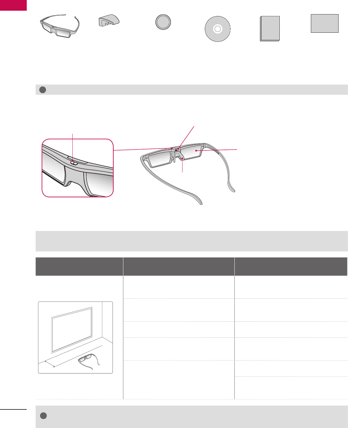 NOTE ▶Make sure to turn off the 3D glasses when they are not in use. Otherwise, the battery life shortens.