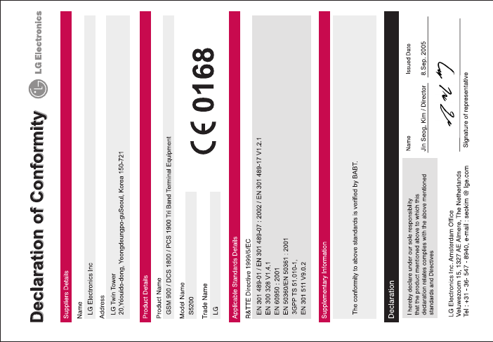 LG Electronics USA S5200 PCS GSM Phone With Bluetooth User Manual S5200 UK 1104