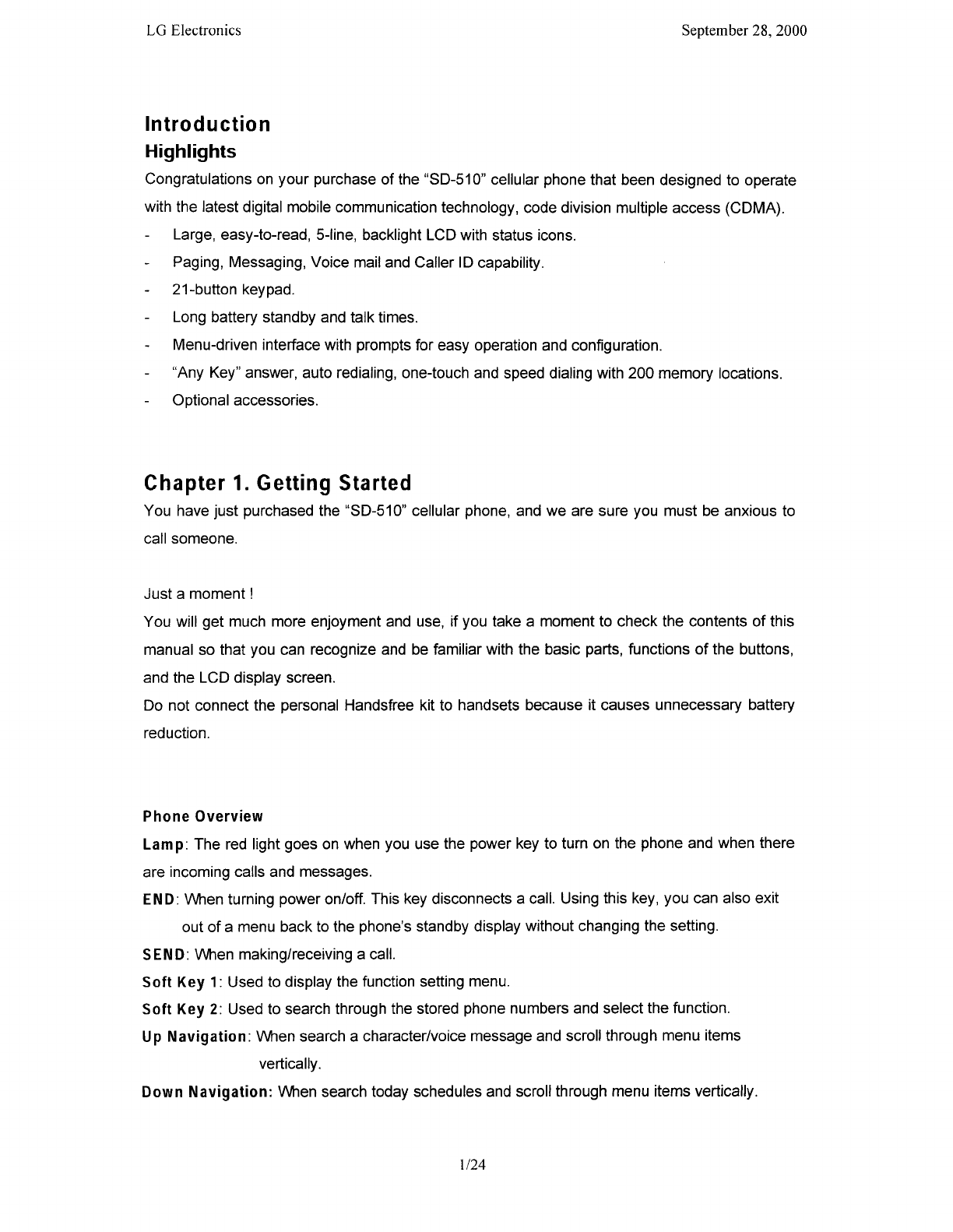 LG Electronics USA SD510 CDMA Cellular Phone User Manual