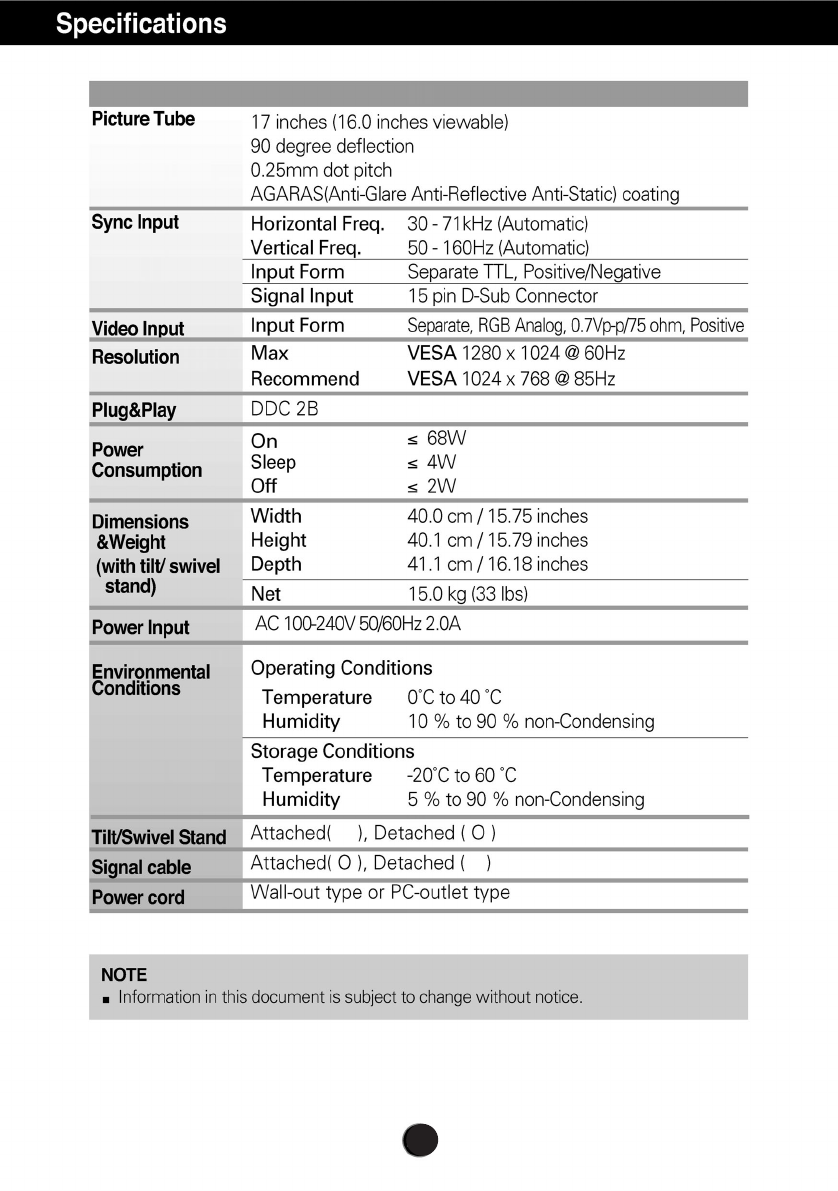 LG Electronics USA COLOR MONITOR F700BK EN