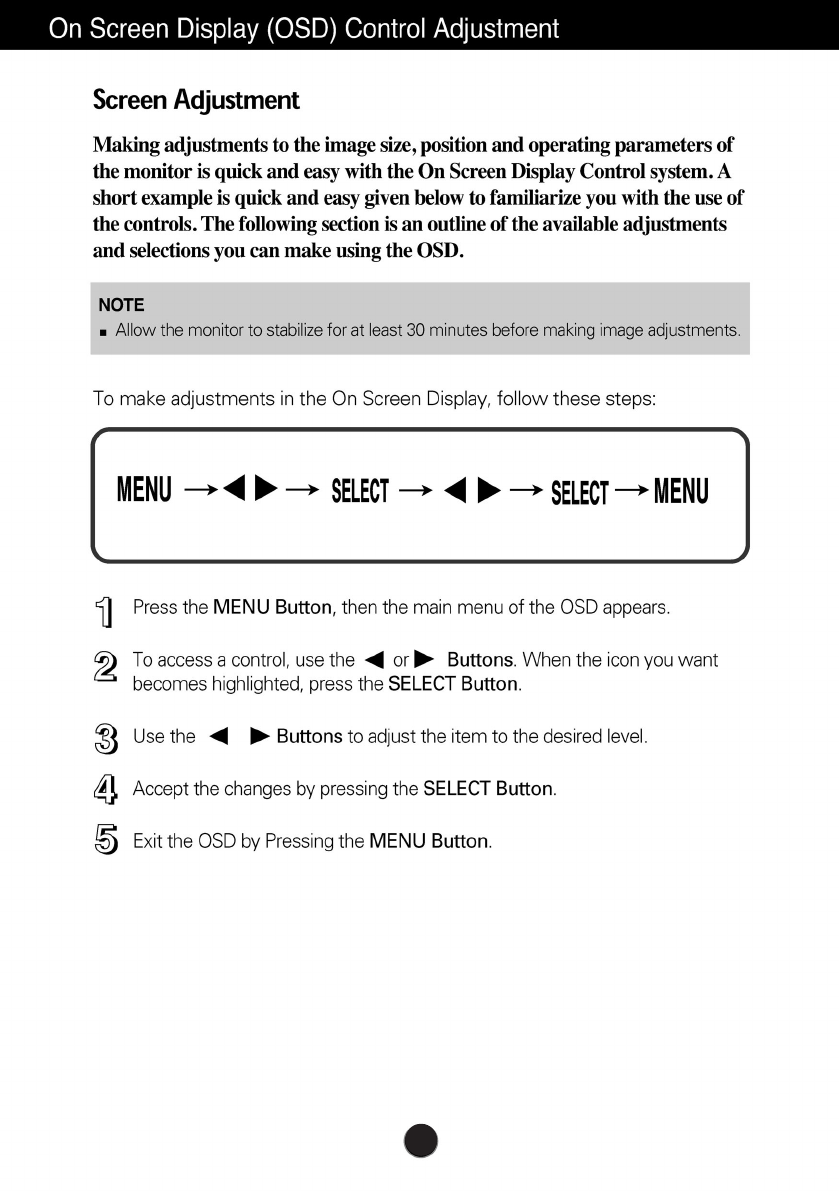 the screen adjustment menu to adjust the screen.
