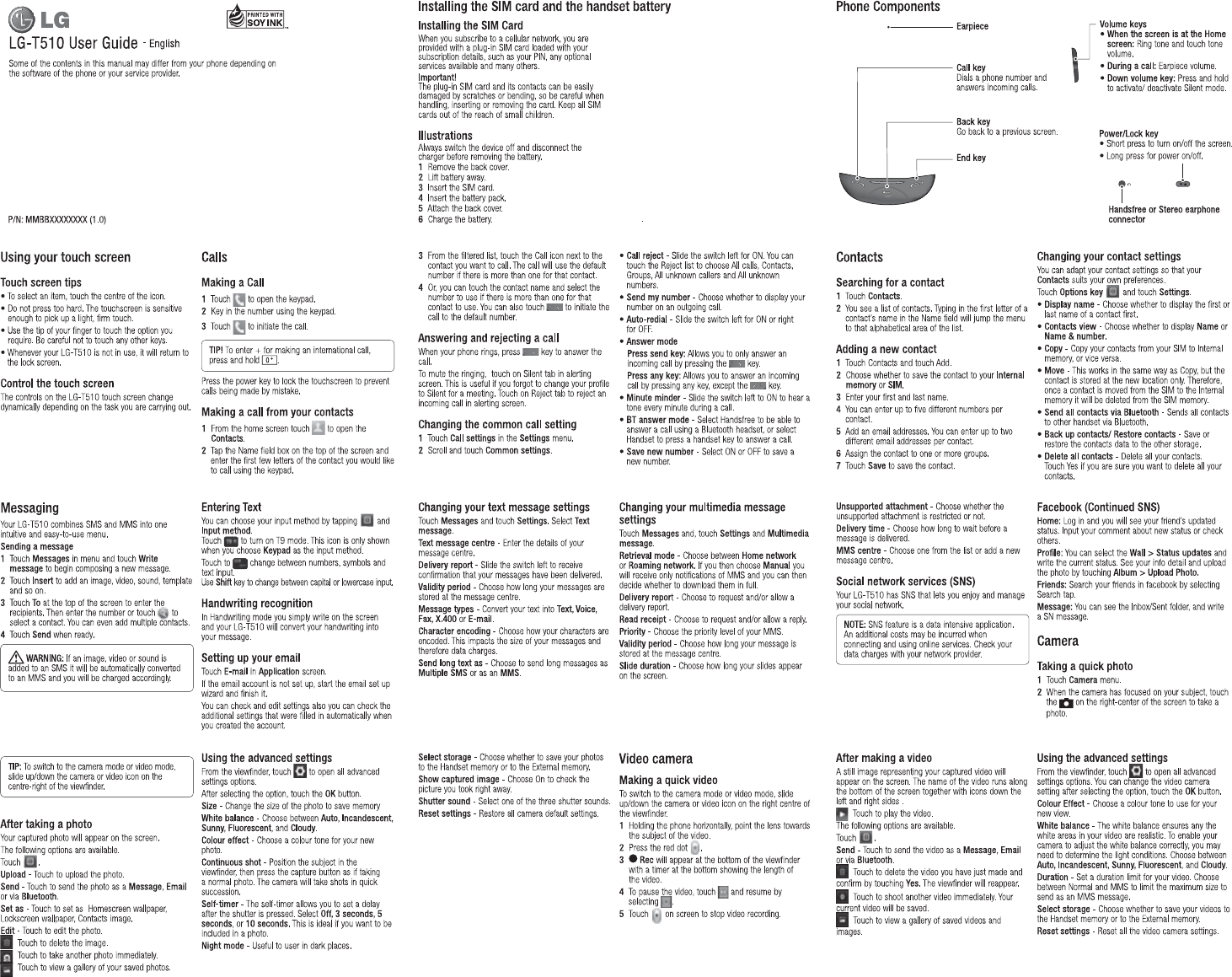 LG Electronics USA T510 Cellular/PCS GSM Phone with Bluetooth User Manual