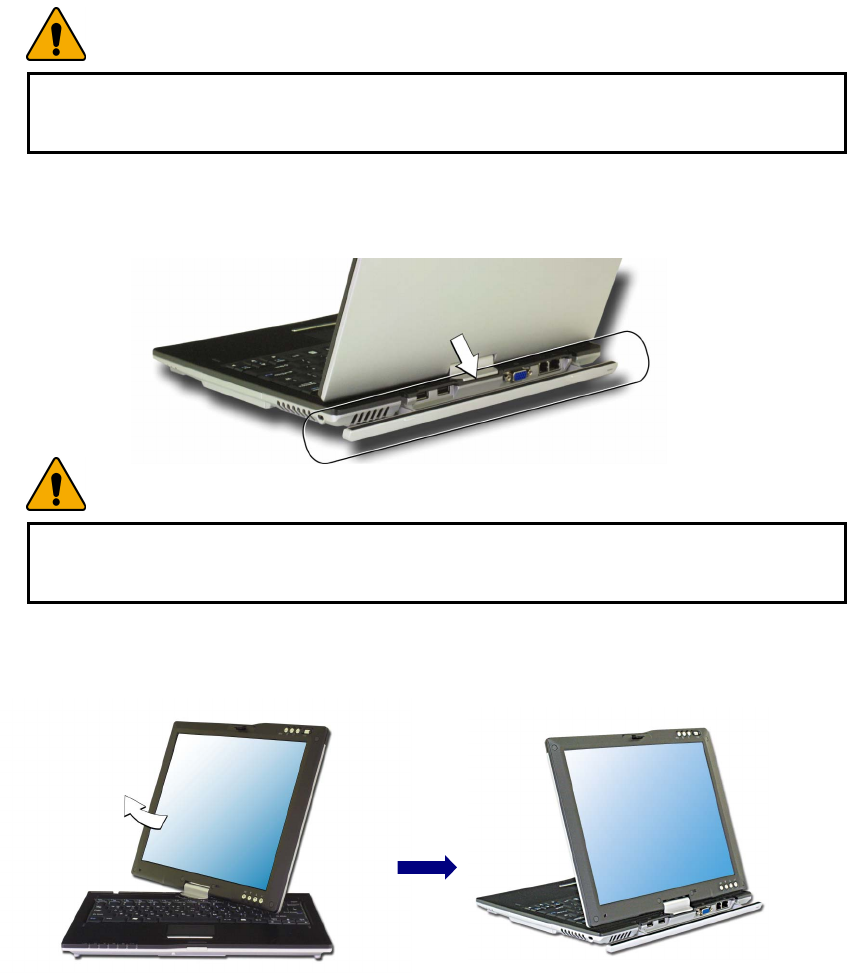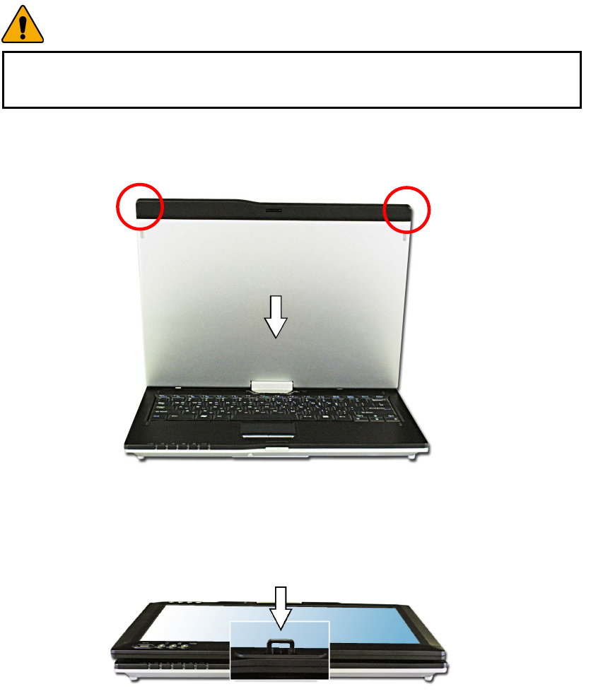 4. Pull down LCD panel to table PC body as direction (white arrow) with holding