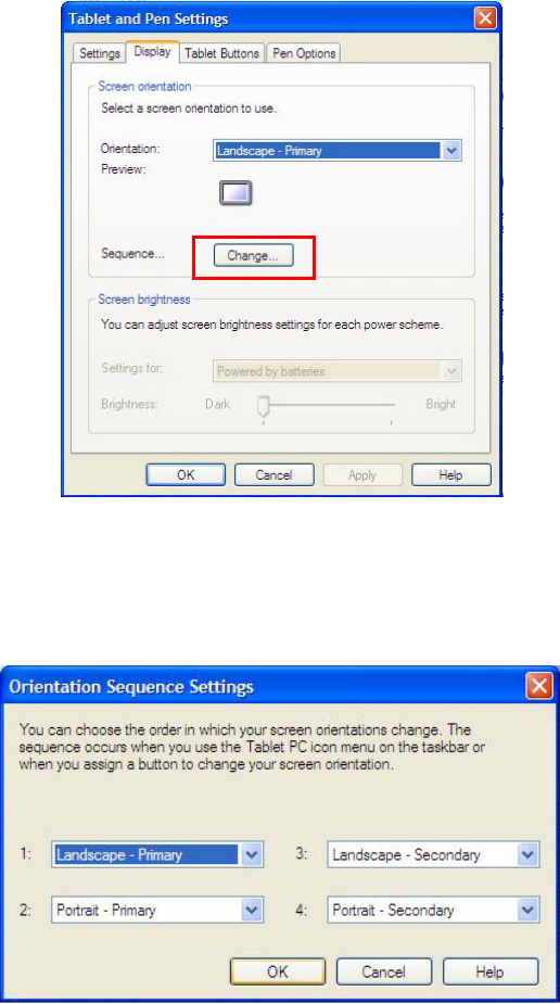 2. Modify the screen direction at [Orientation Sequence Settings], and click