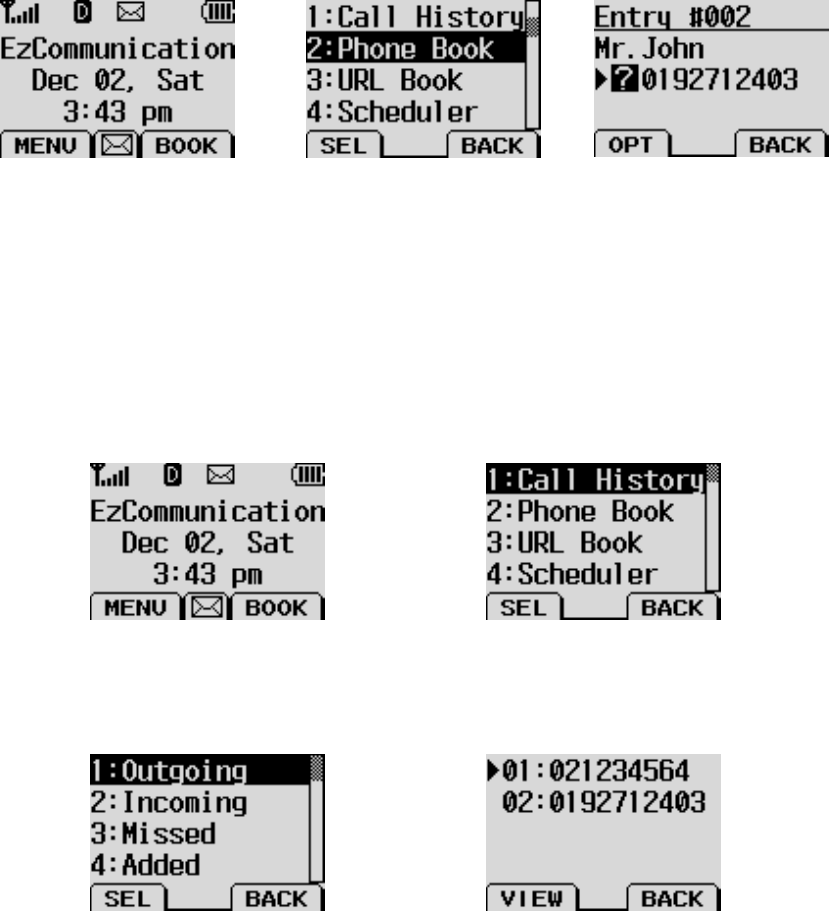 2. If you are not sure of the phone entry number, select the Soft Key(BOOK)